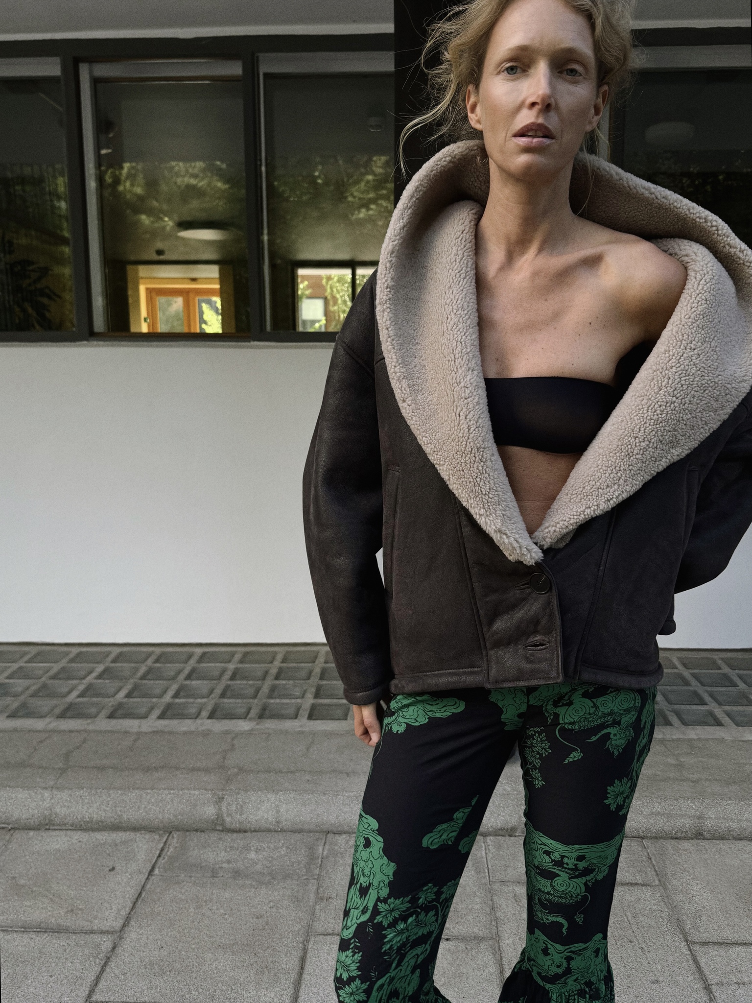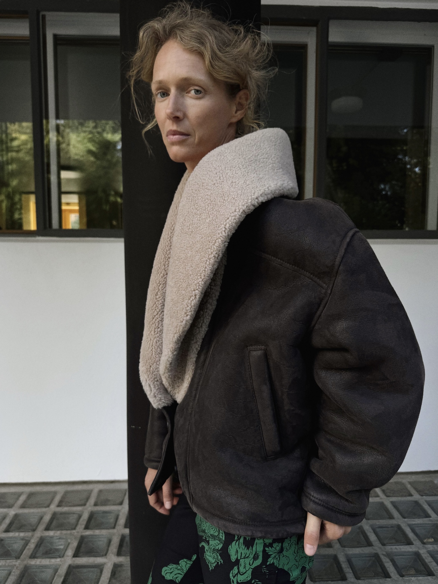 Коричневая дублёнка из натуральной овчины. Объемный меховой воротник подчеркнёт вашу элегантность и защитит от зимних холодов. Эта универсальная вещь станет вашим лучшим другом осенью и зимой – стильный акцент гардероба, который согревает и подчёркивает индивидуальность.