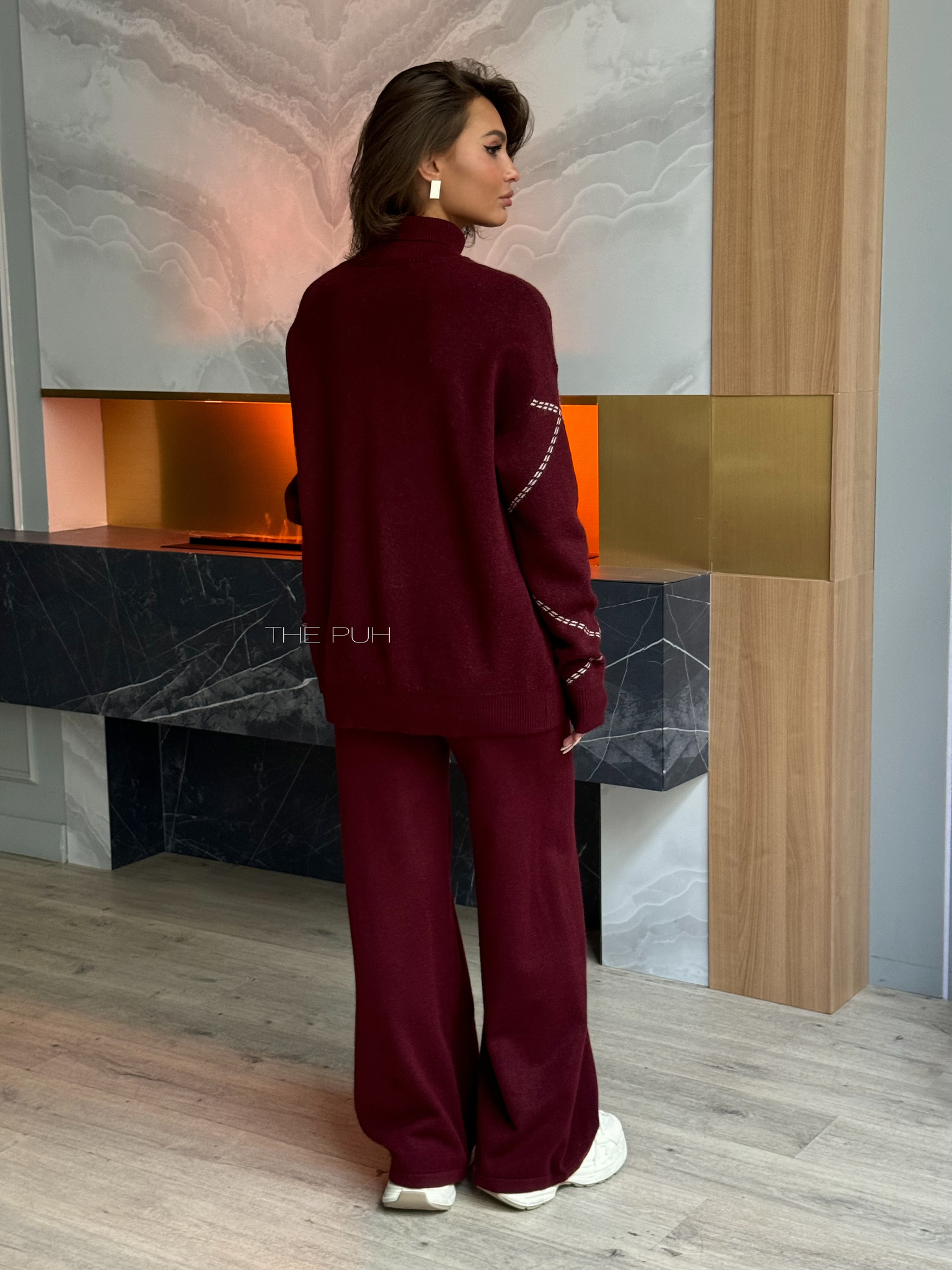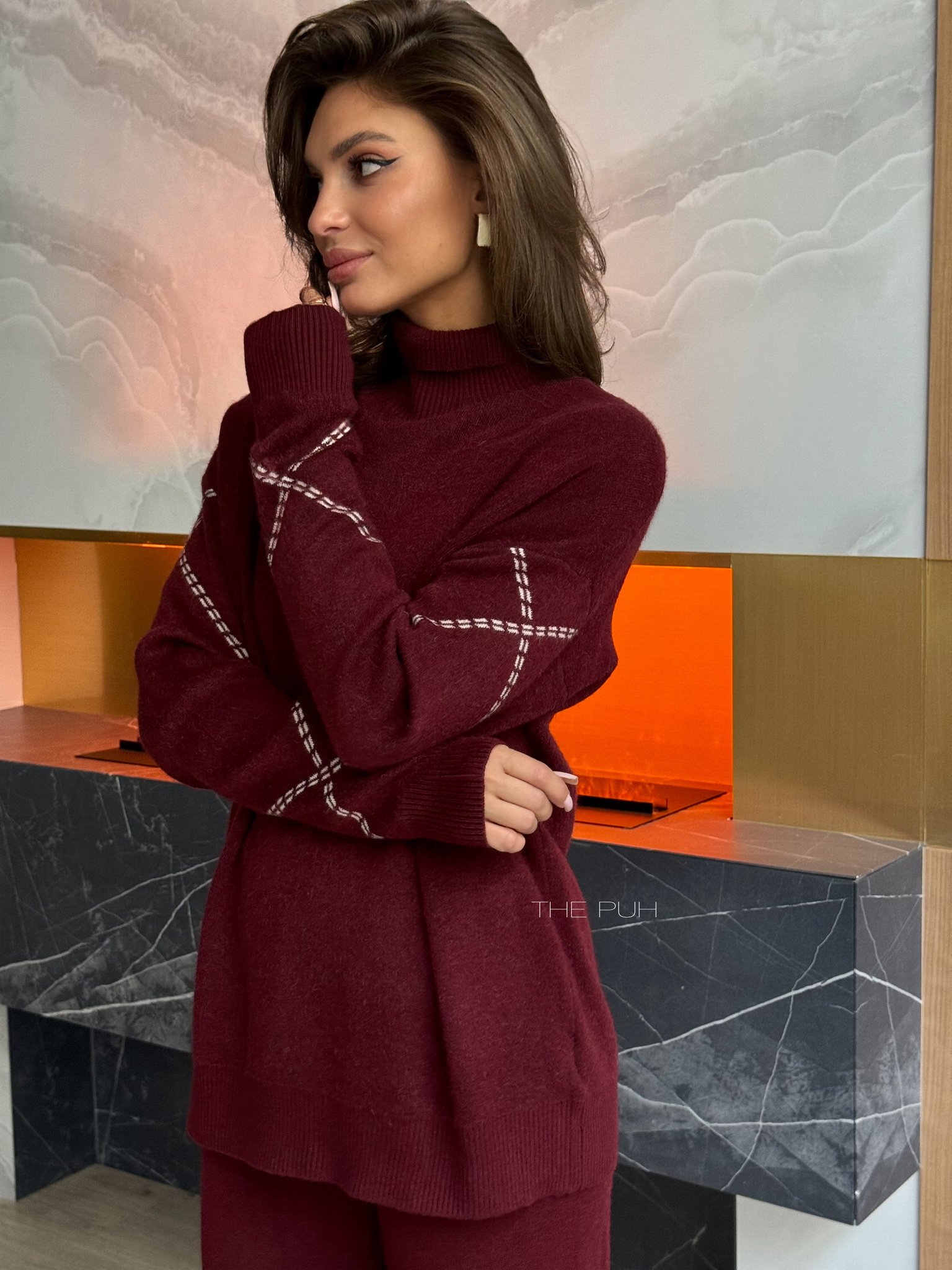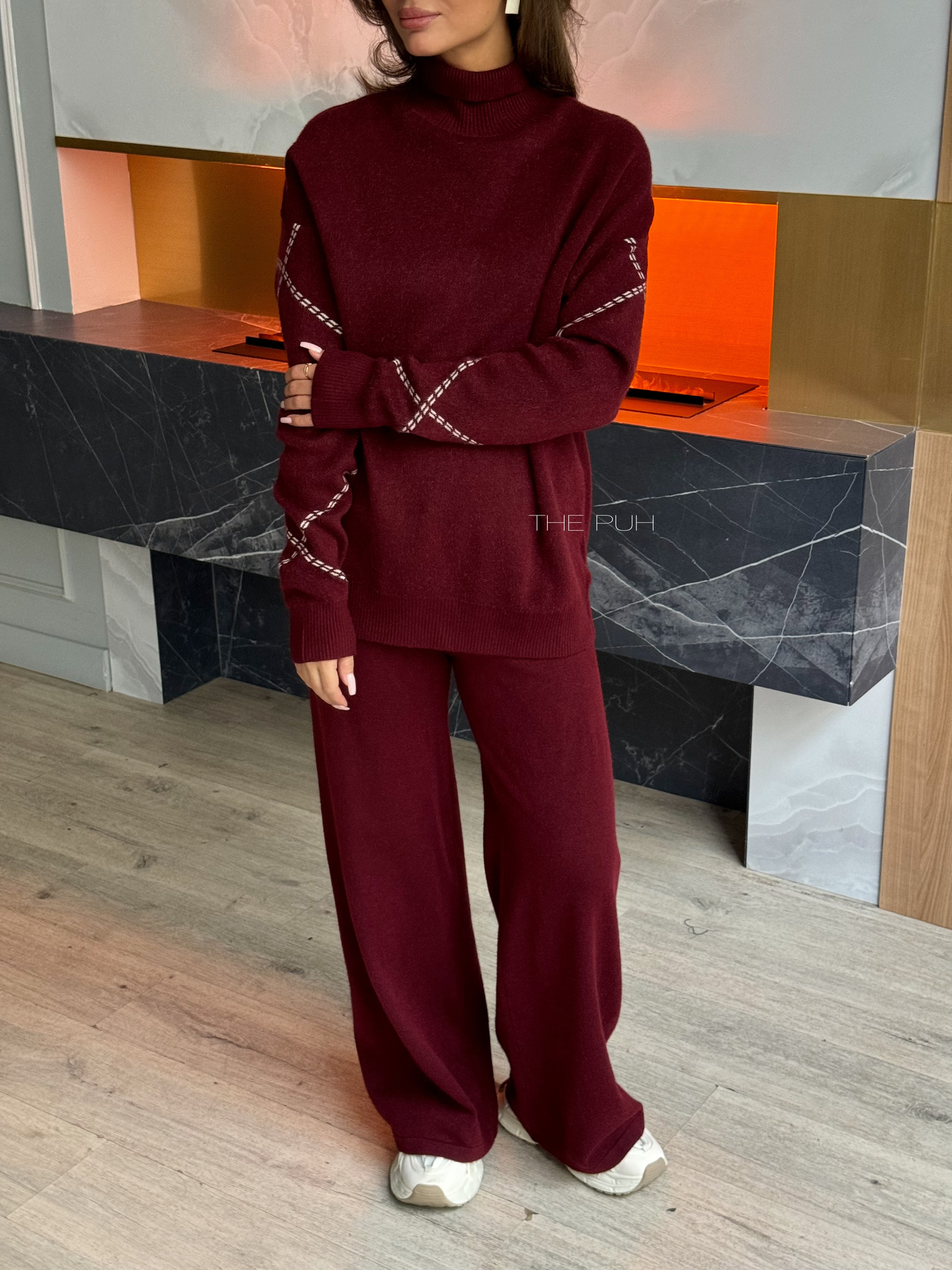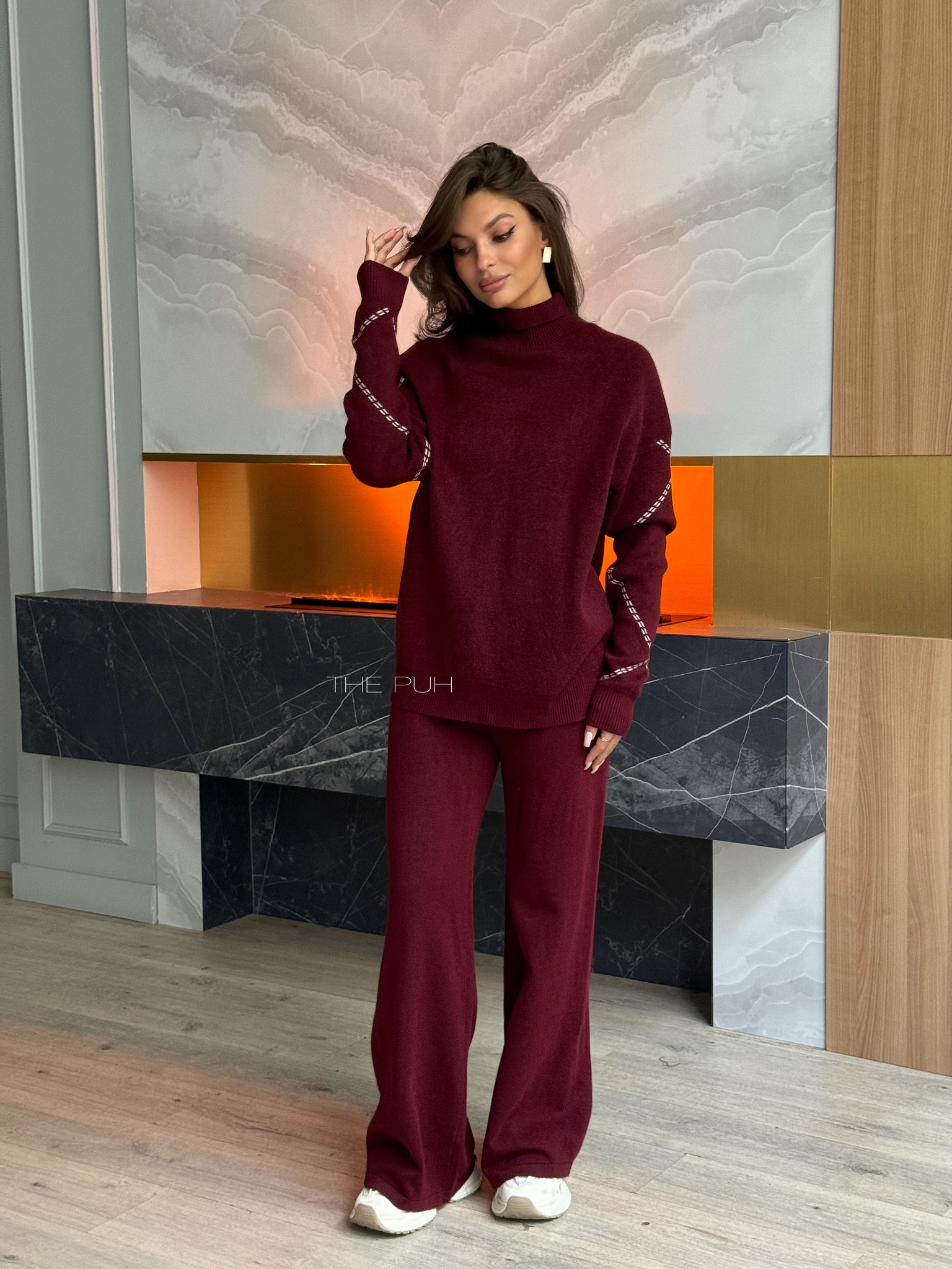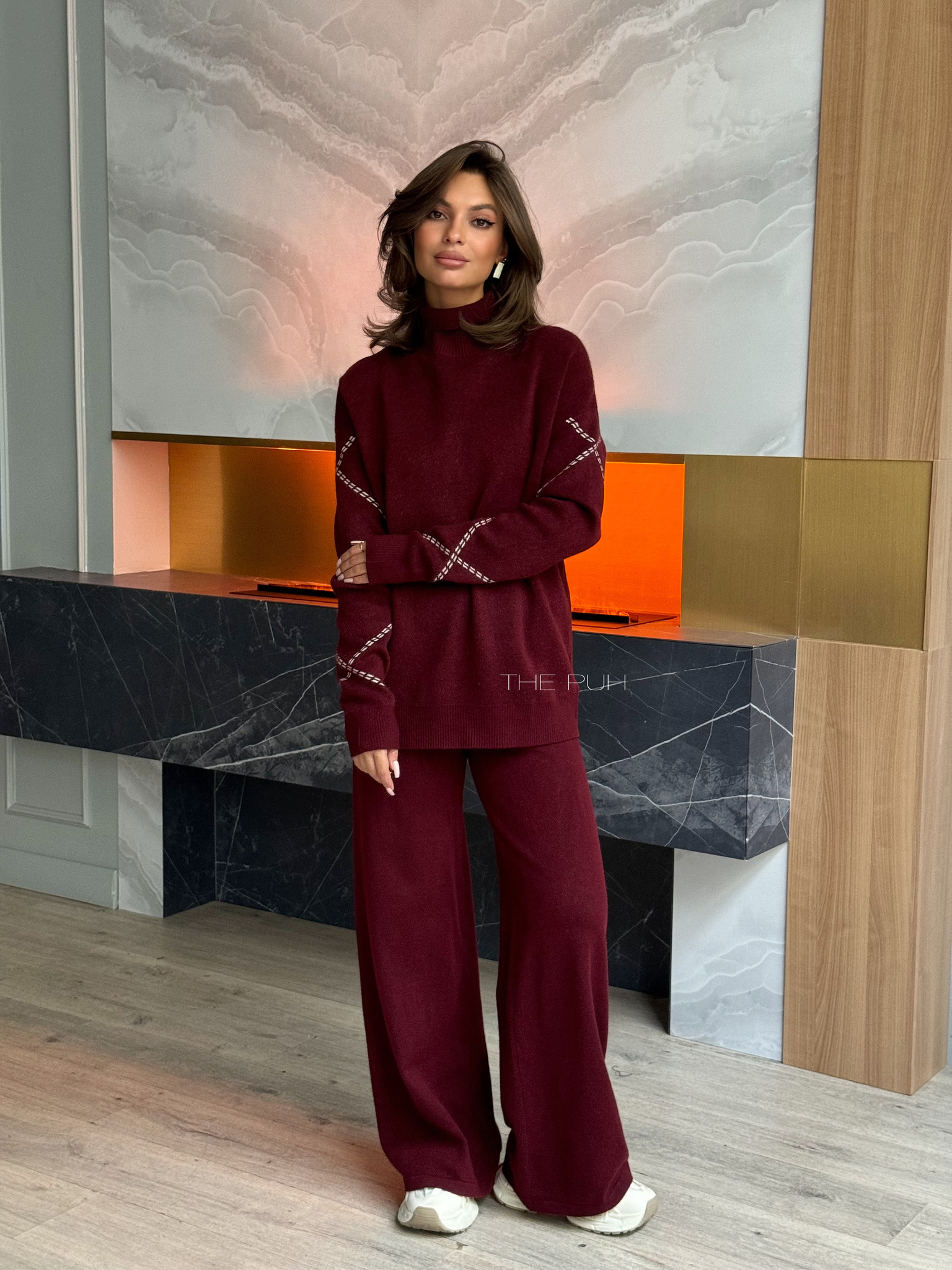 Вязаный костюм джемпер + брюки выполнен из мягкой смесовой пряжи с добавлением кашемира и вискозы.
