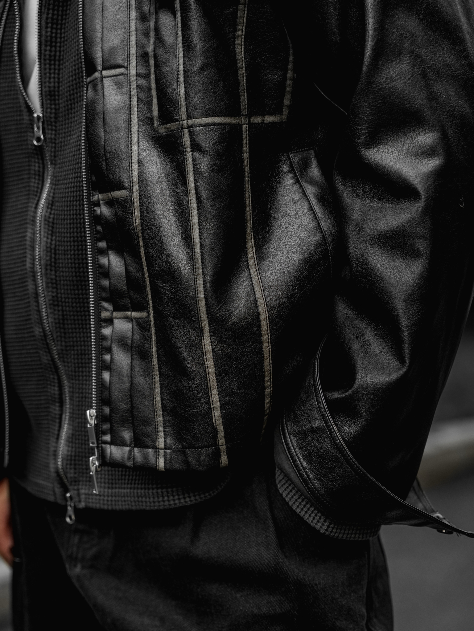 Куртка из эко-кожи с застежкой на молнию сочетает стильный дизайн и удобство, подчеркивая современный образ. Мягкий материал и лаконичный крой делают ее универсальным вариантом для повседневной носки