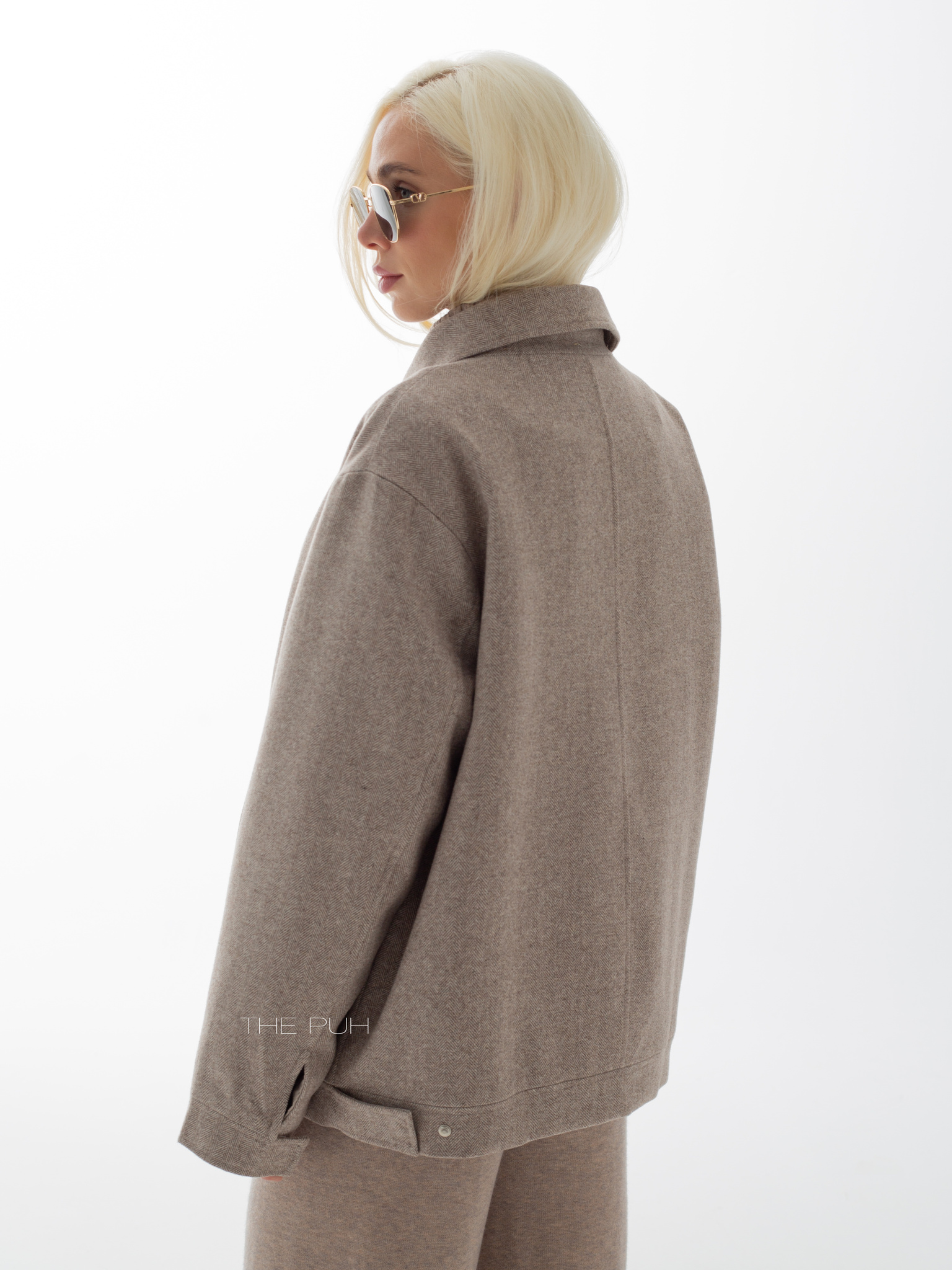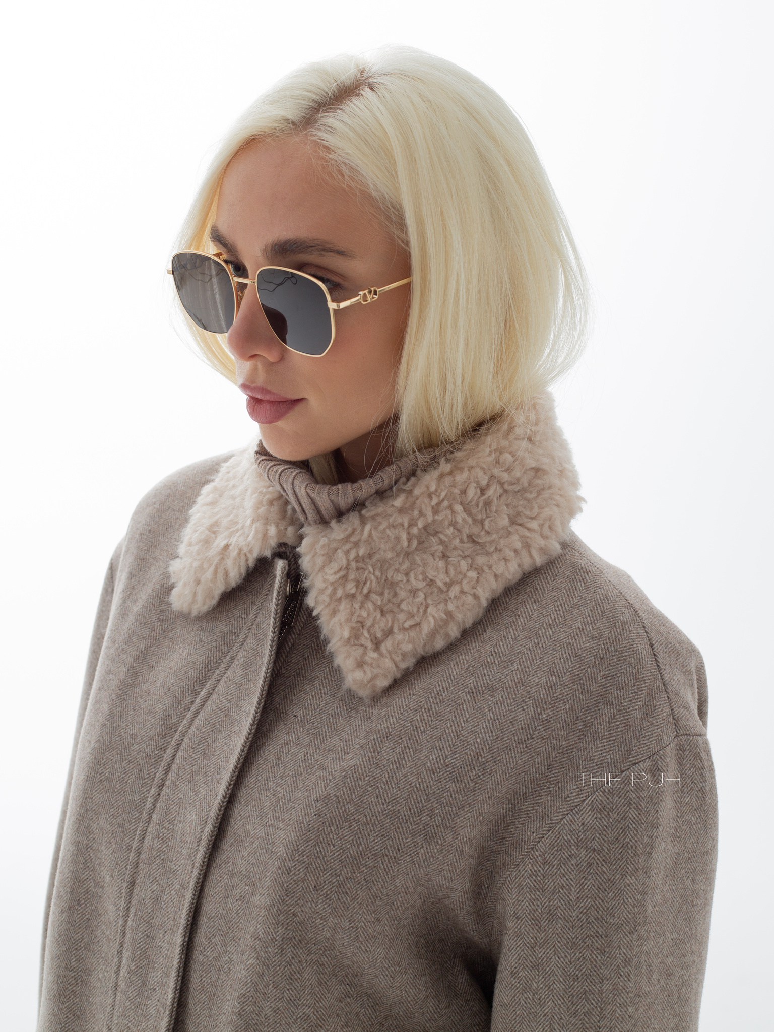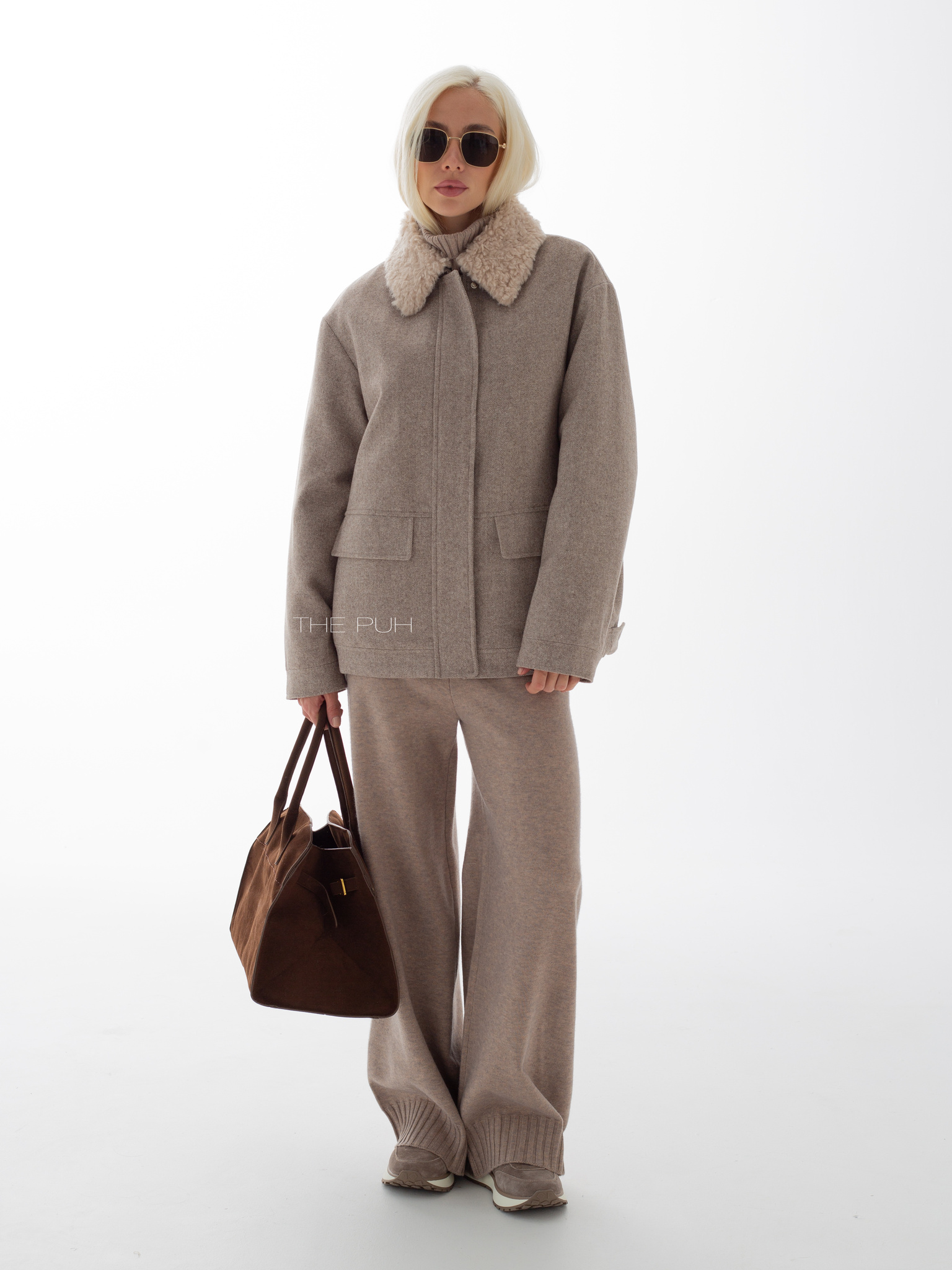 Бежевая шерстяная куртка в елочку на молнии со съемным меховым воротником – элегантное решение для холодов. Аккуратная меховая окантовка мягко обрамляет шею, придавая образу утончённость без лишней массивности, а натуральная шерсть в составе защитит от первых осенних холодов.