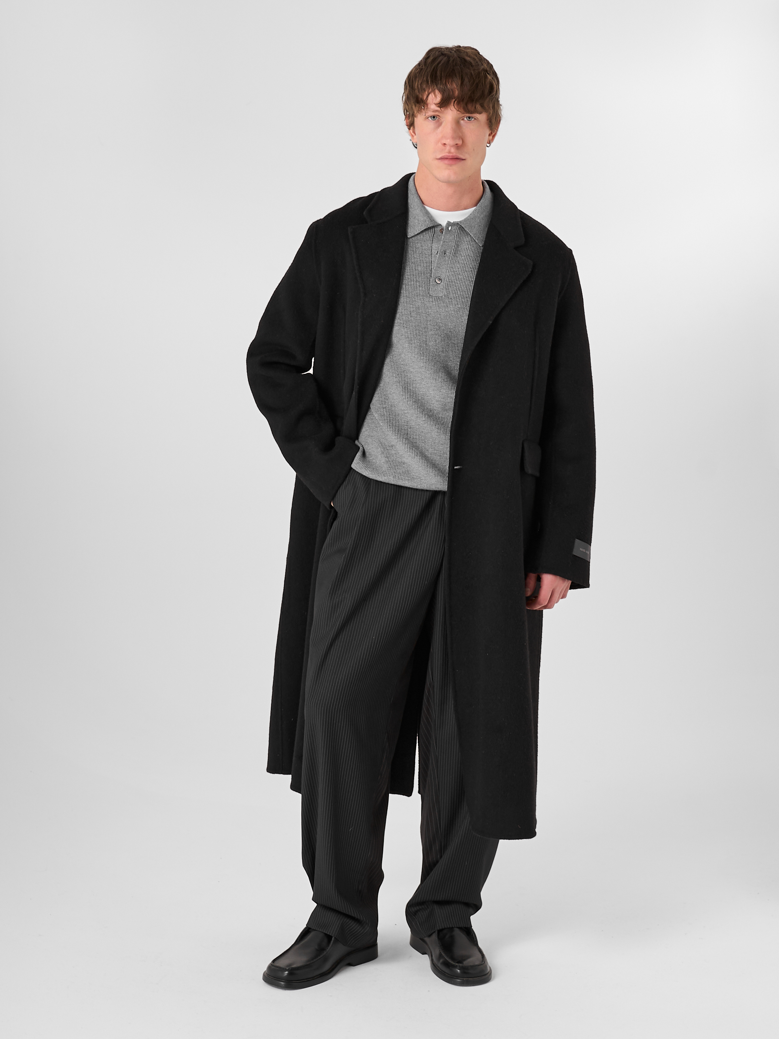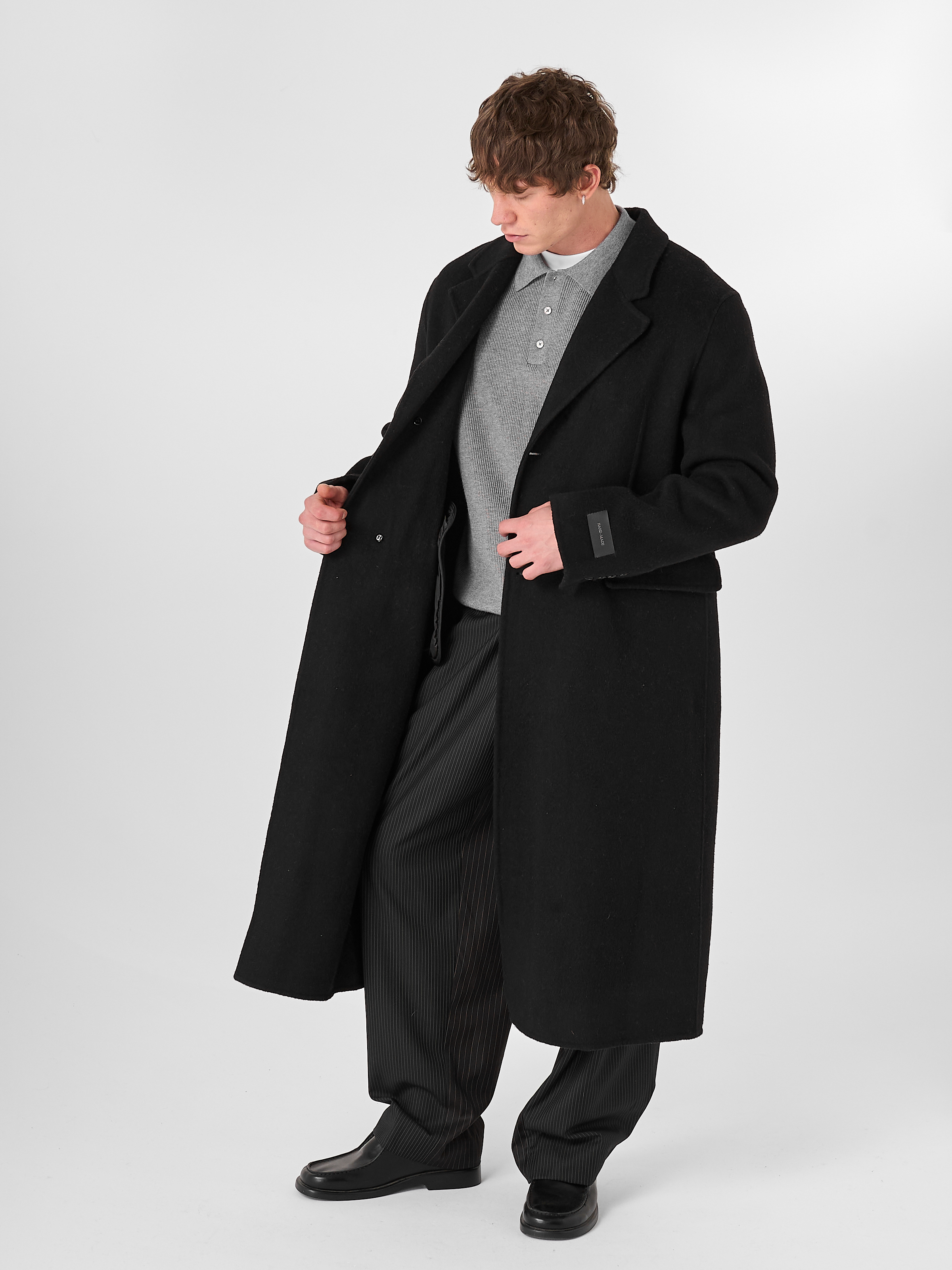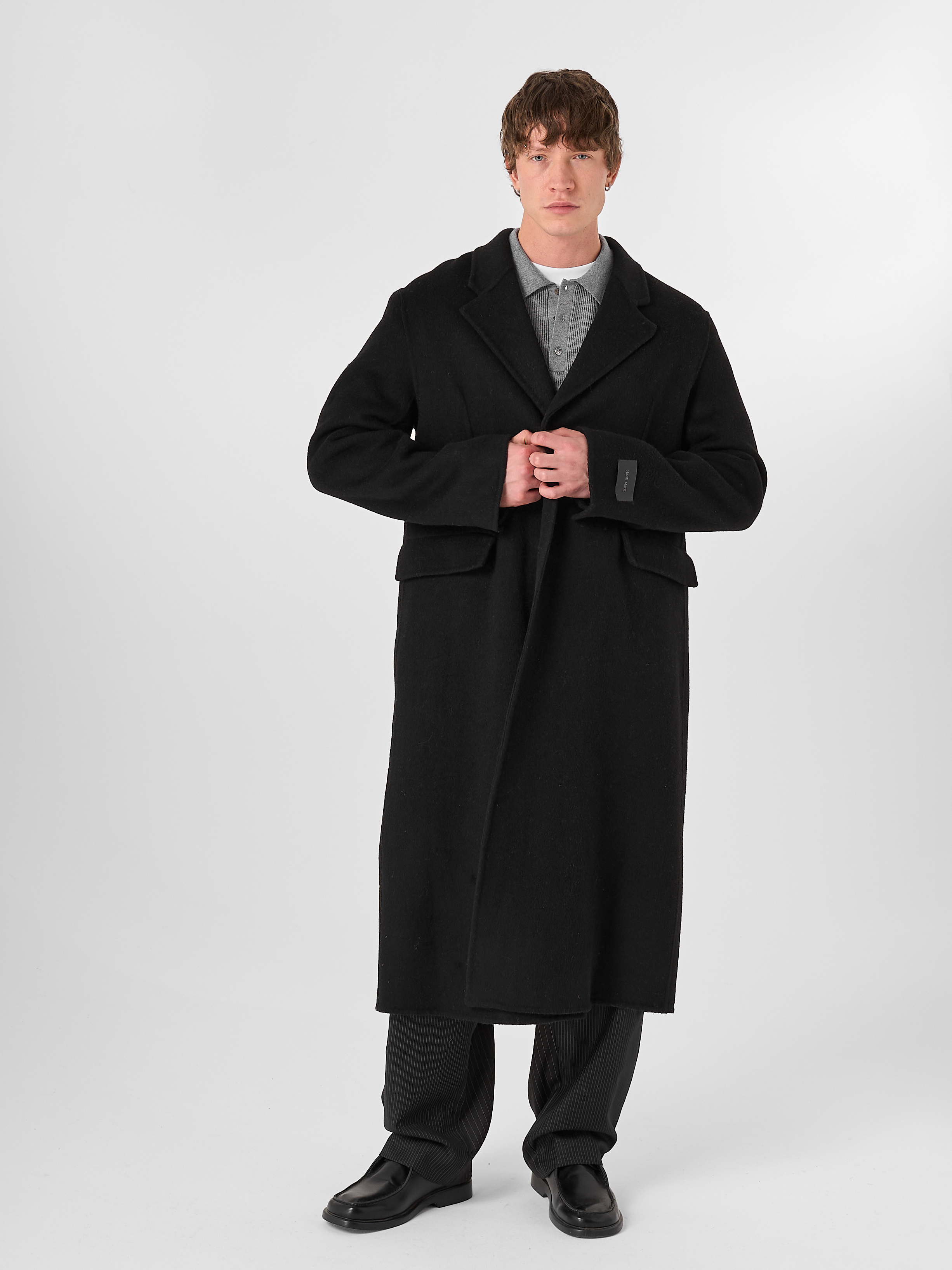 Мужское черное шерстяное пальто – ваш идеальный спутник осенне-зимнего сезона! Элегантность дизайна подчеркнет статус и стиль владельца, а натуральный материал обеспечит комфорт и тепло даже в самые холодные дни. Удобная длина, качественные детали и универсальная цветовая гамма делают это пальто незаменимым элементом гардероба, подходящим как для повседневных образов, так и для деловых встреч.