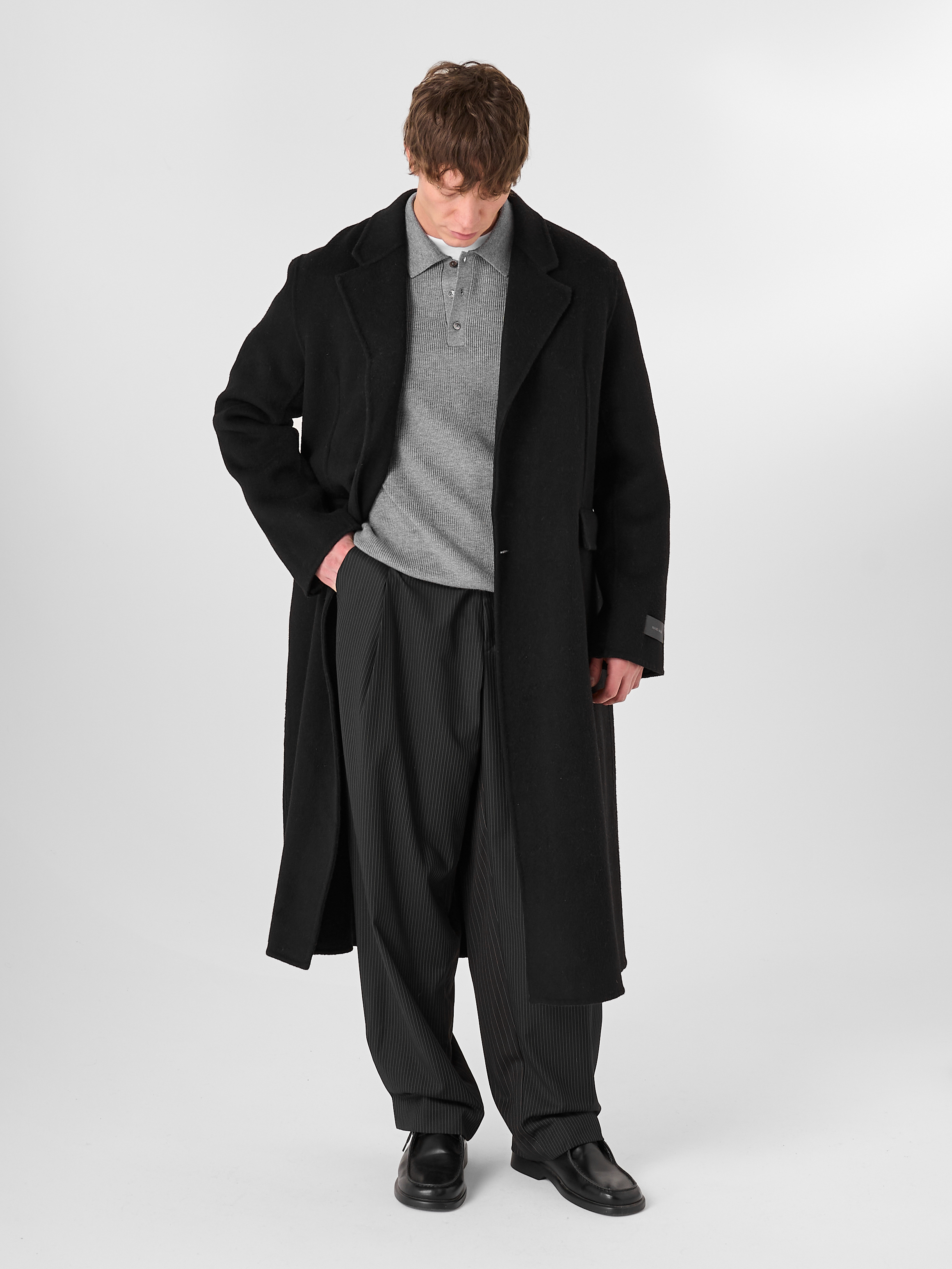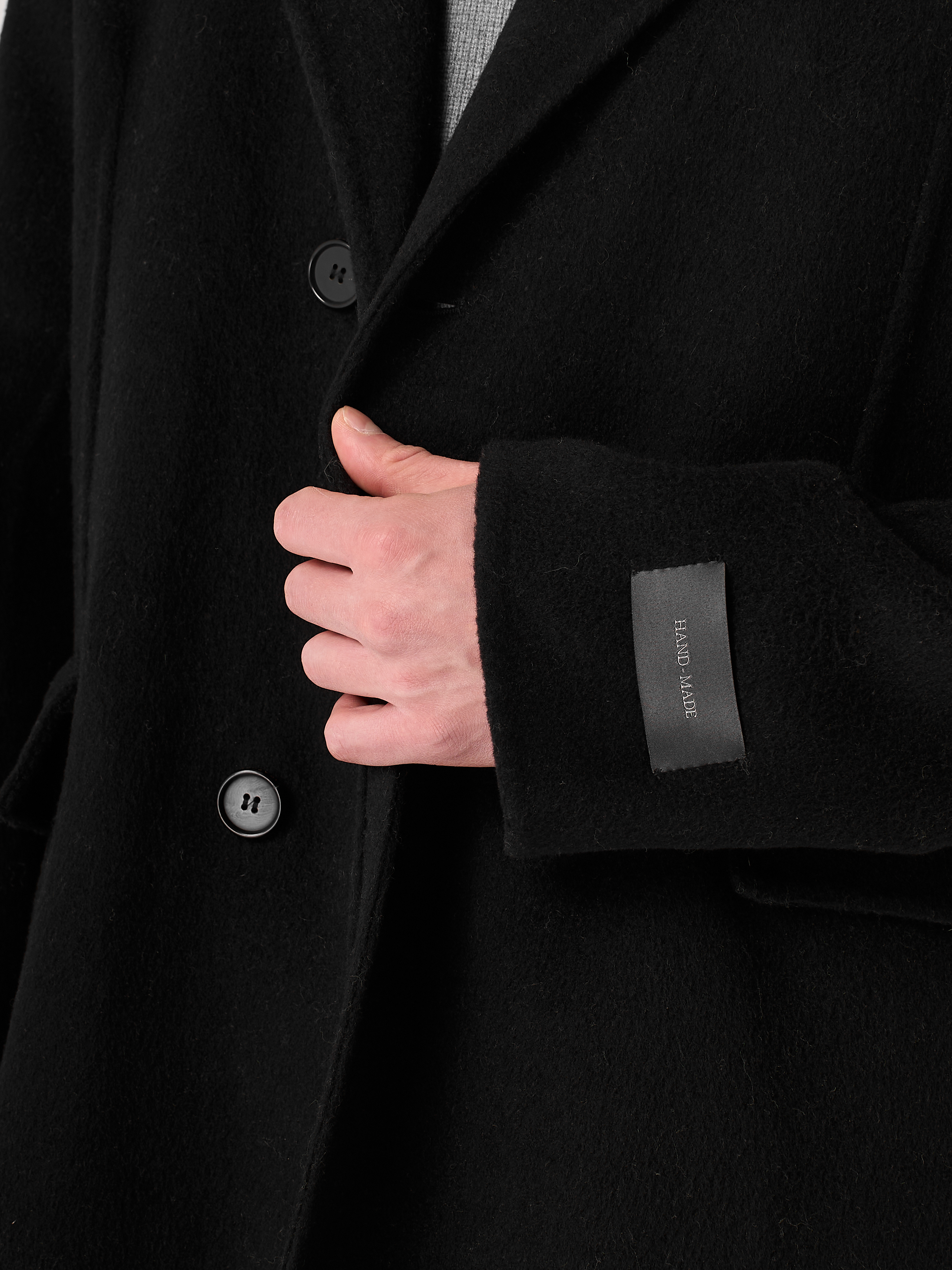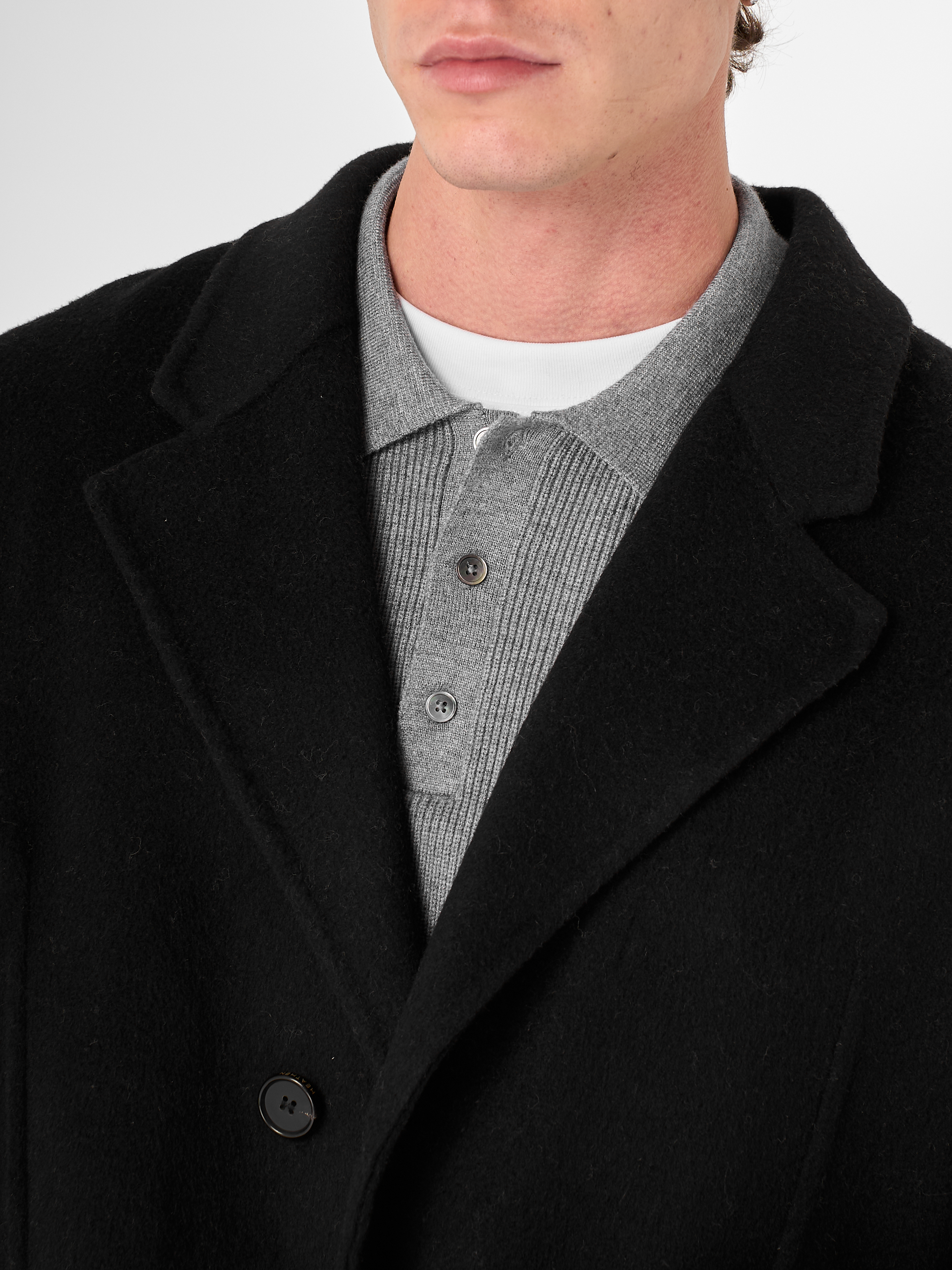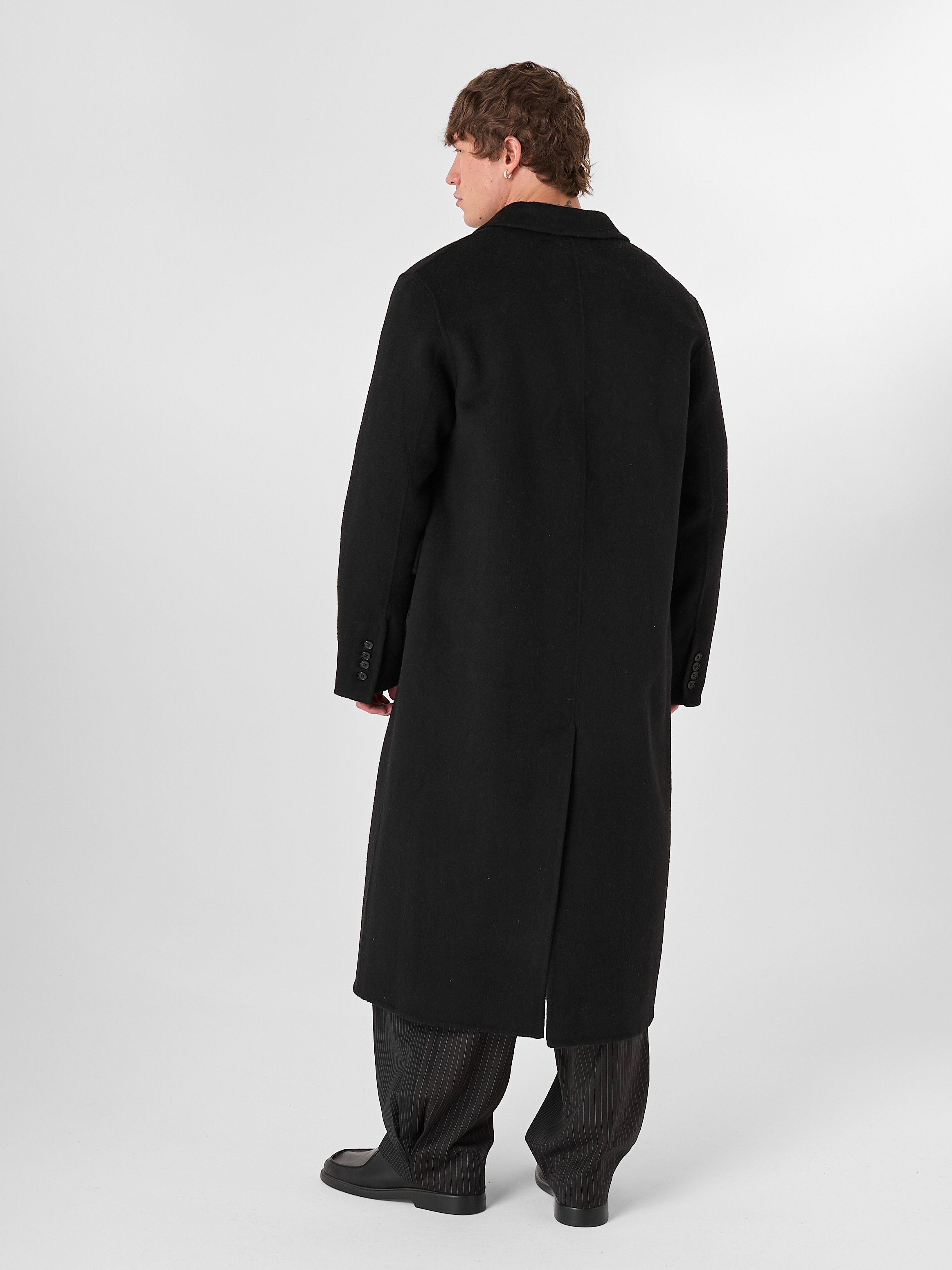 Мужское черное шерстяное пальто – ваш идеальный спутник осенне-зимнего сезона! Элегантность дизайна подчеркнет статус и стиль владельца, а натуральный материал обеспечит комфорт и тепло даже в самые холодные дни. Удобная длина, качественные детали и универсальная цветовая гамма делают это пальто незаменимым элементом гардероба, подходящим как для повседневных образов, так и для деловых встреч.