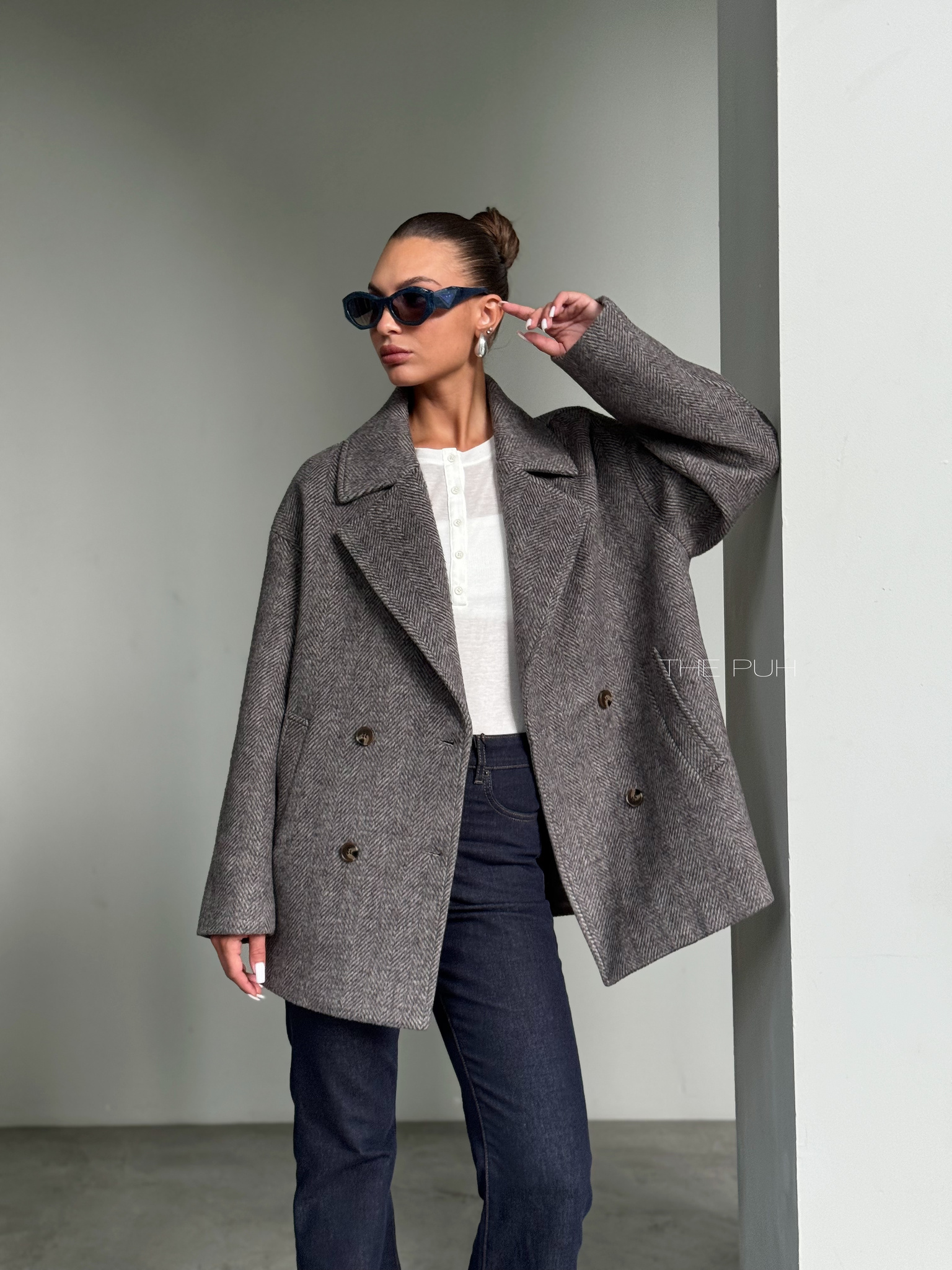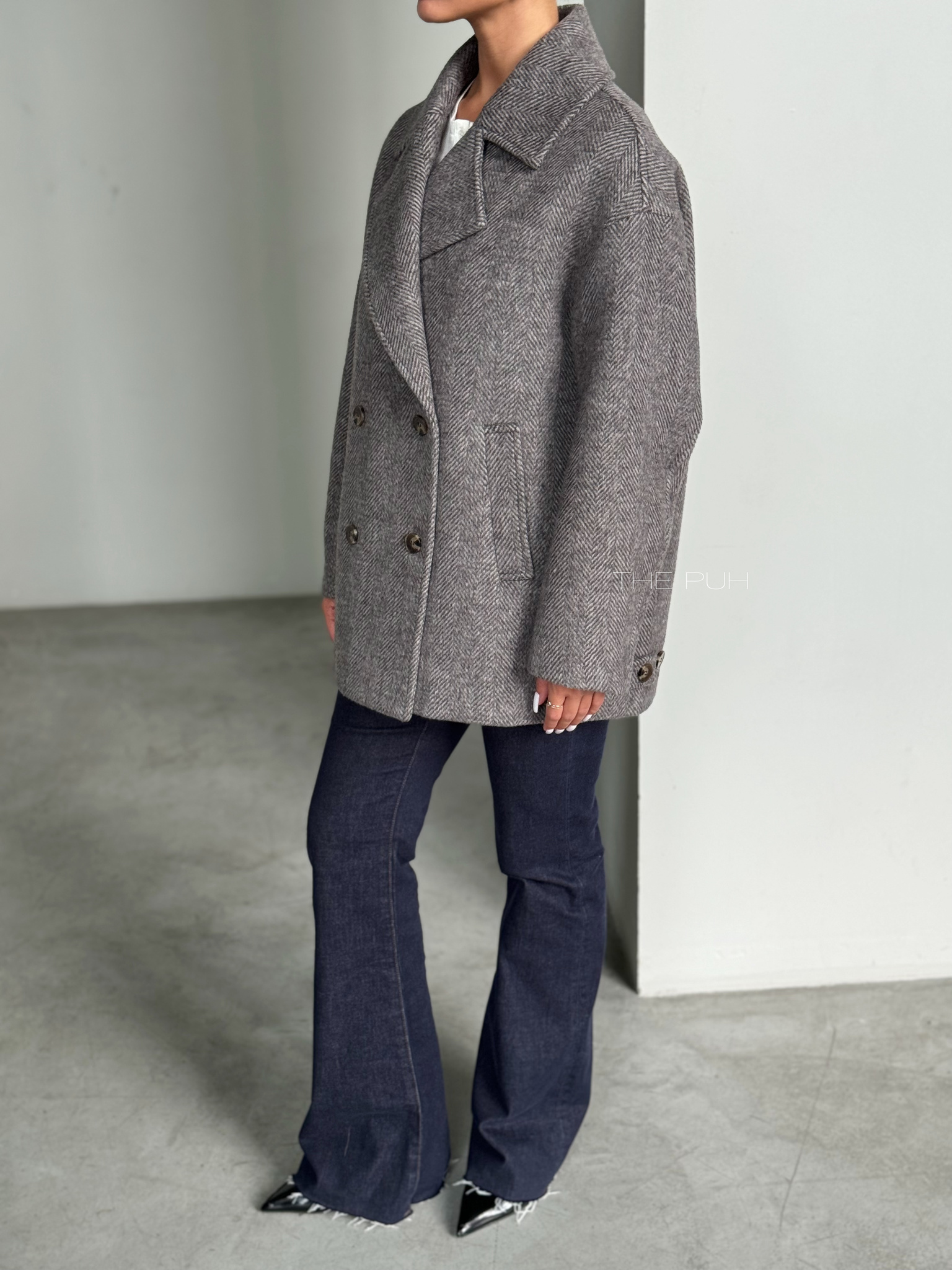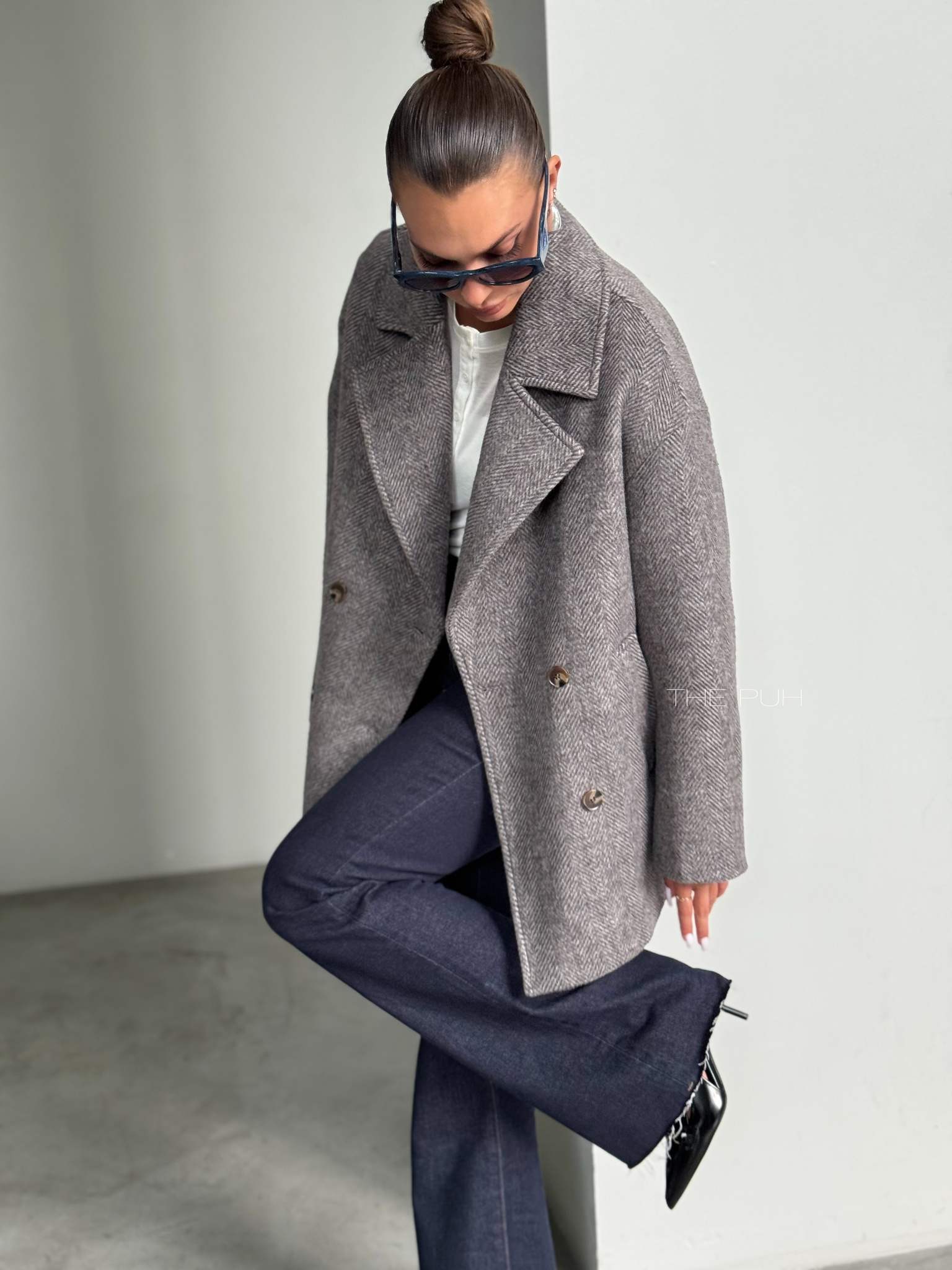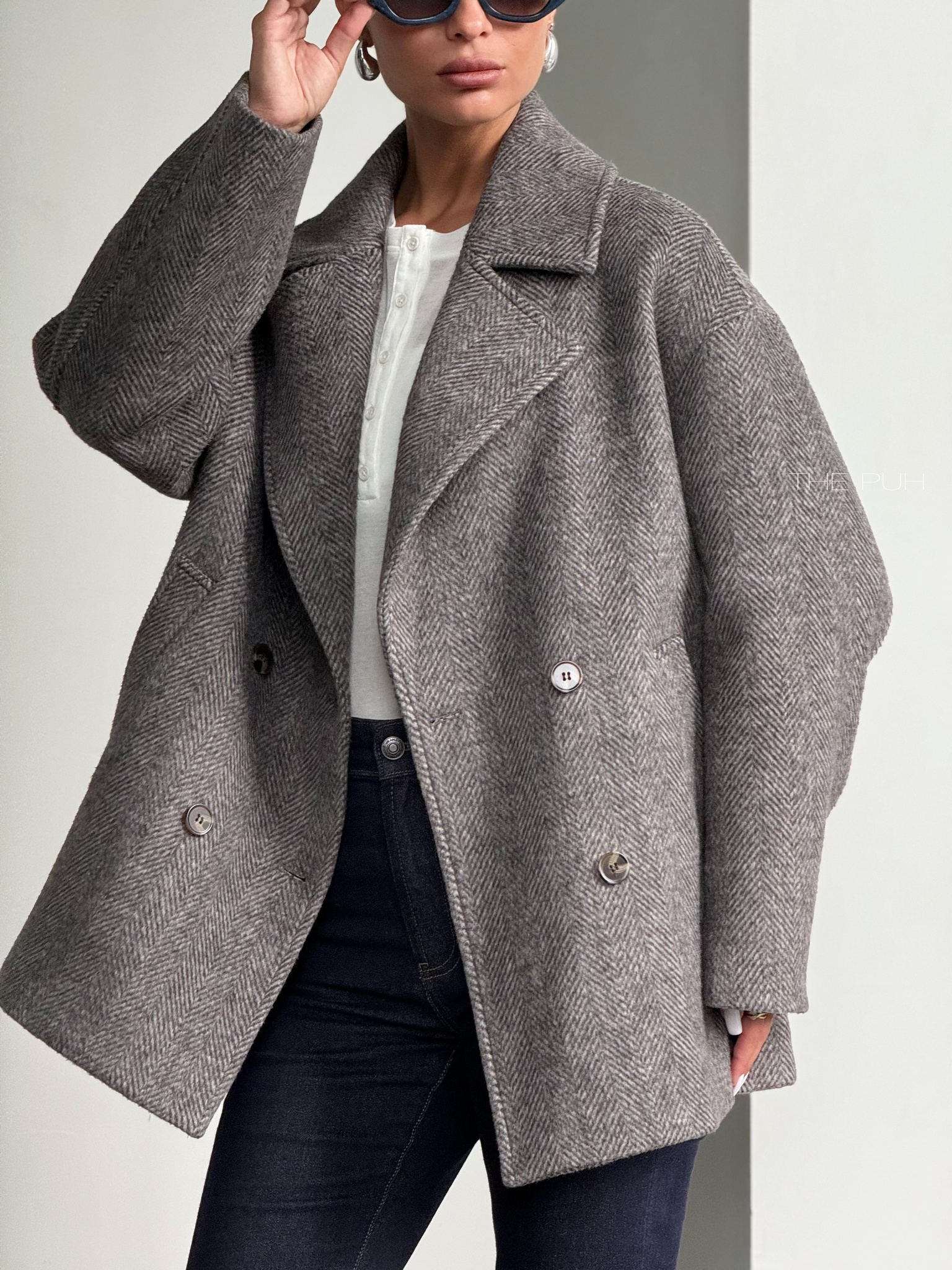 Серый двубортный пиджак из мягкой шерсти с классическим кроем придаст образу элегантную строгость и благородную сдержанность. Его универсальный оттенок и лаконичный дизайн делают эту модель идеальной для офиса, деловых встреч или стильных повседневных образов.
