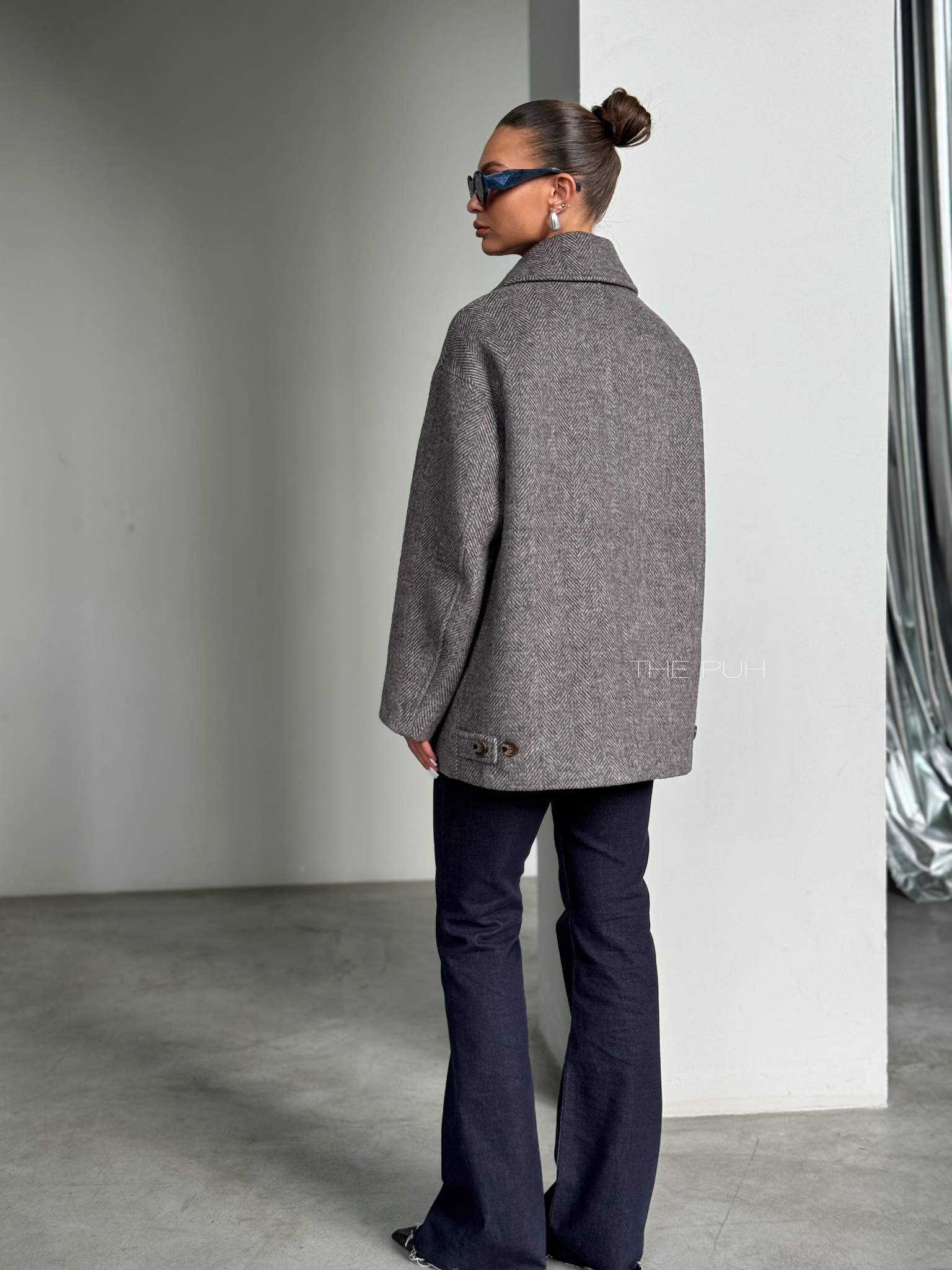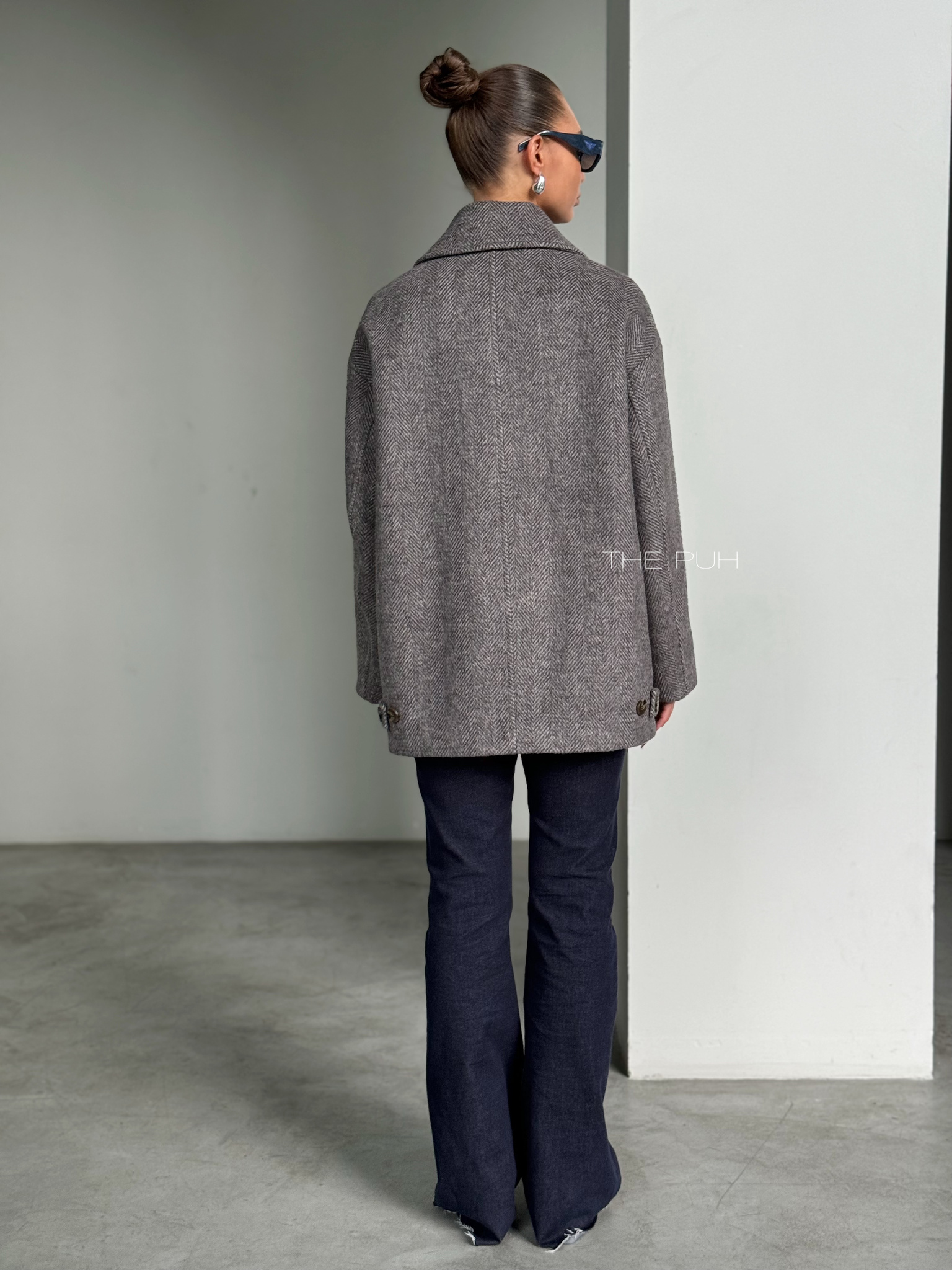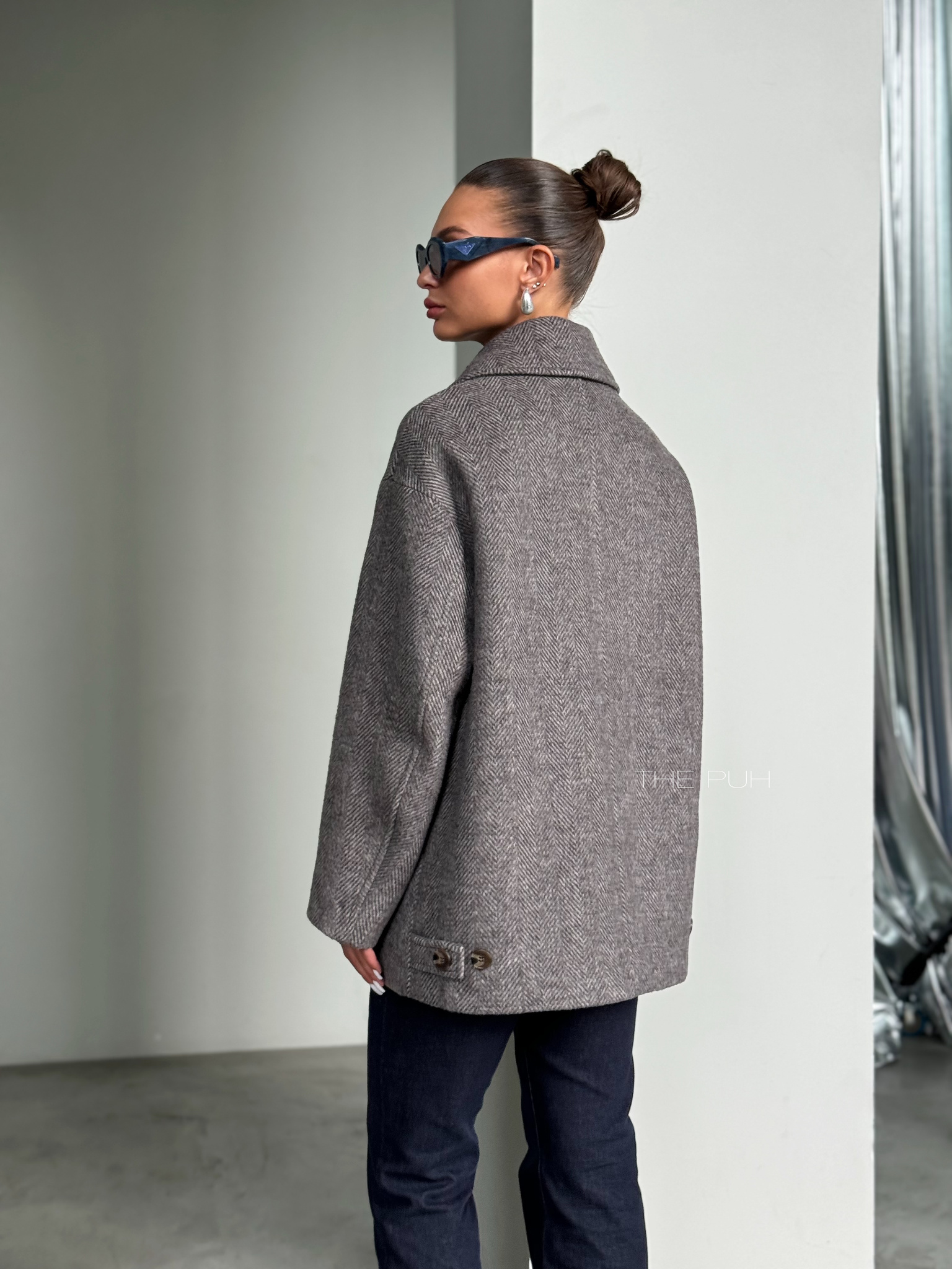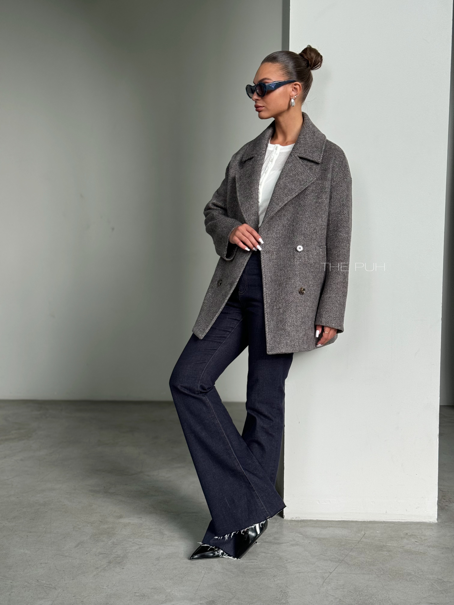 Серый двубортный пиджак из мягкой шерсти с классическим кроем придаст образу элегантную строгость и благородную сдержанность. Его универсальный оттенок и лаконичный дизайн делают эту модель идеальной для офиса, деловых встреч или стильных повседневных образов.