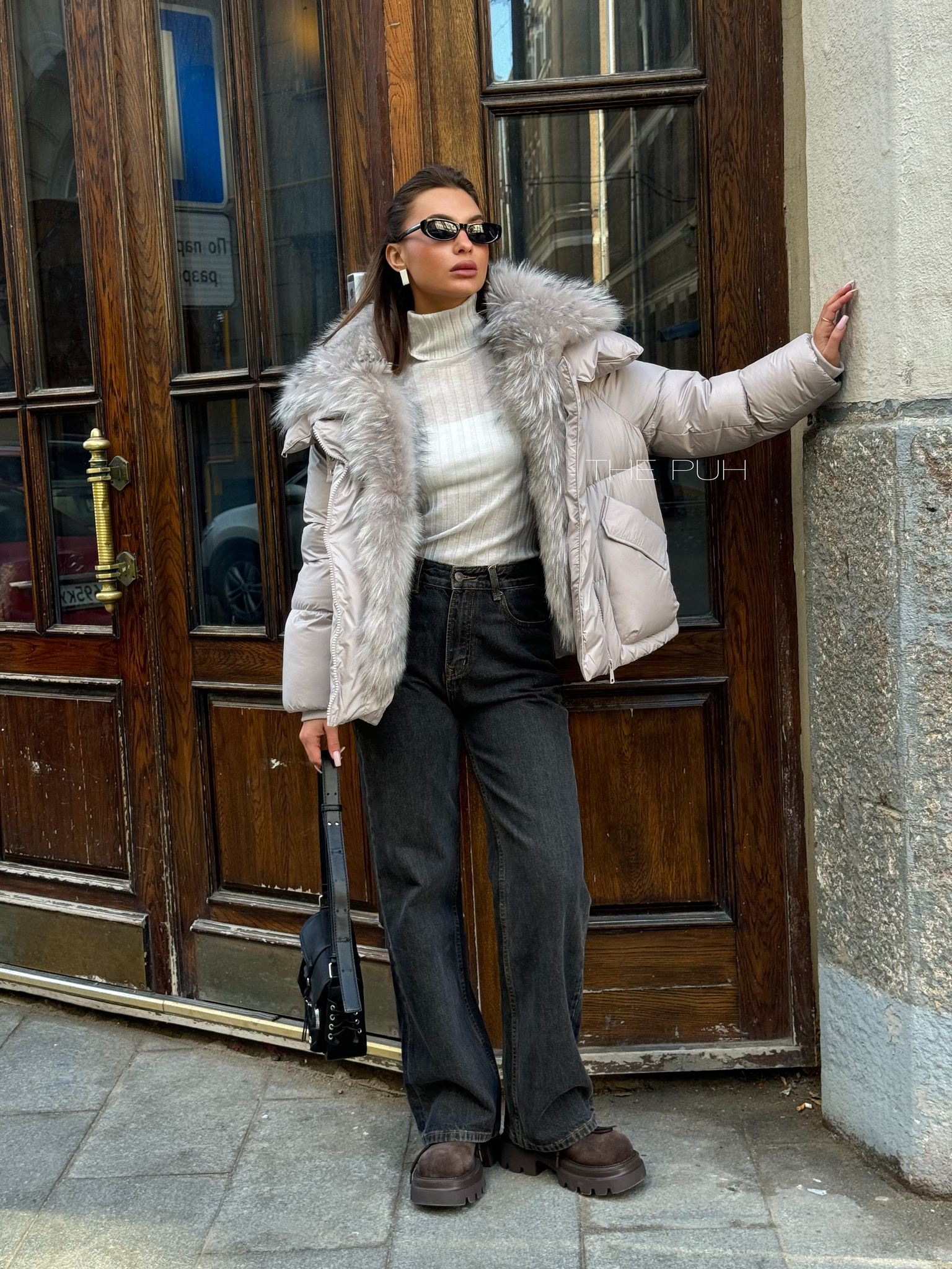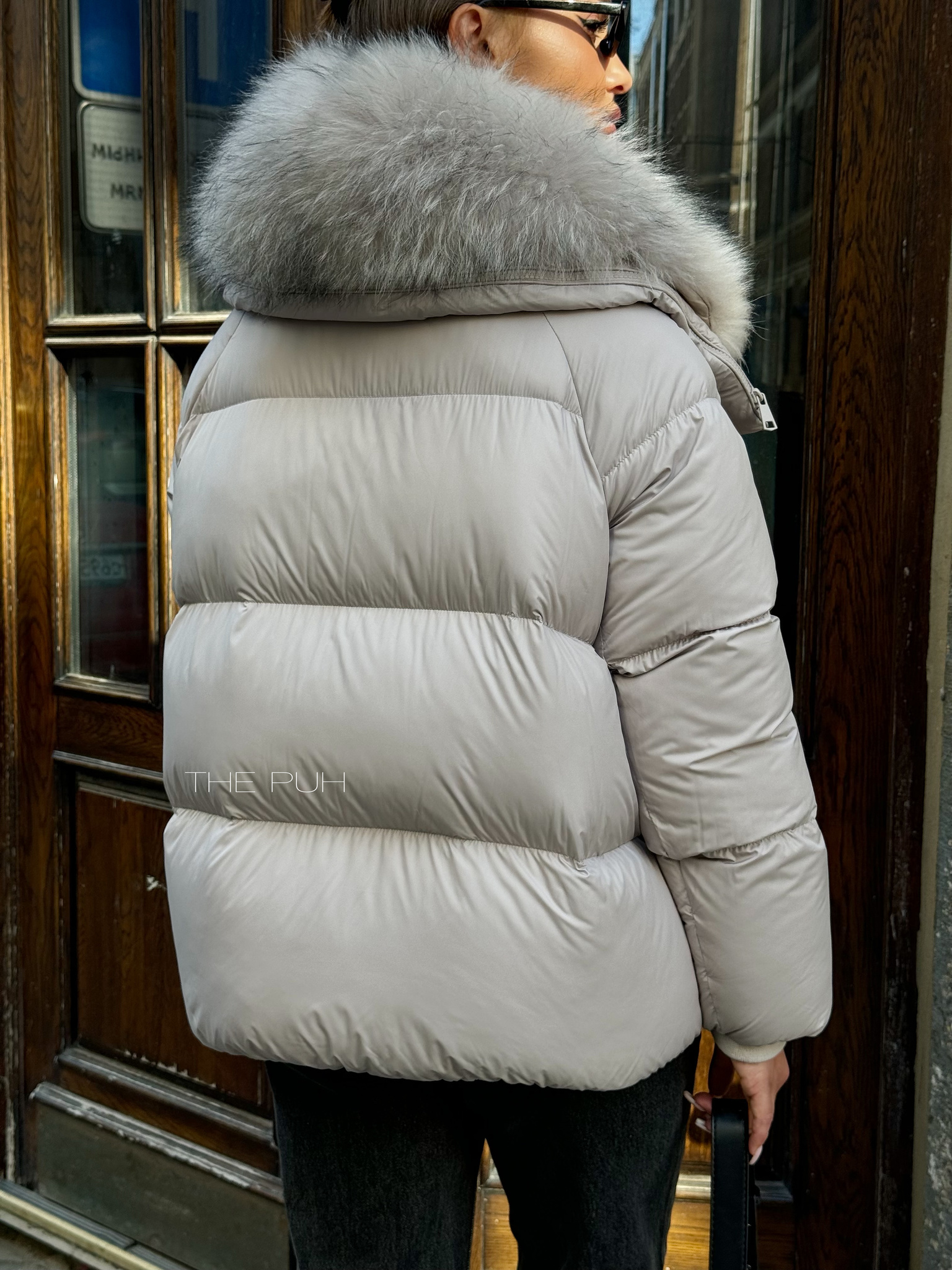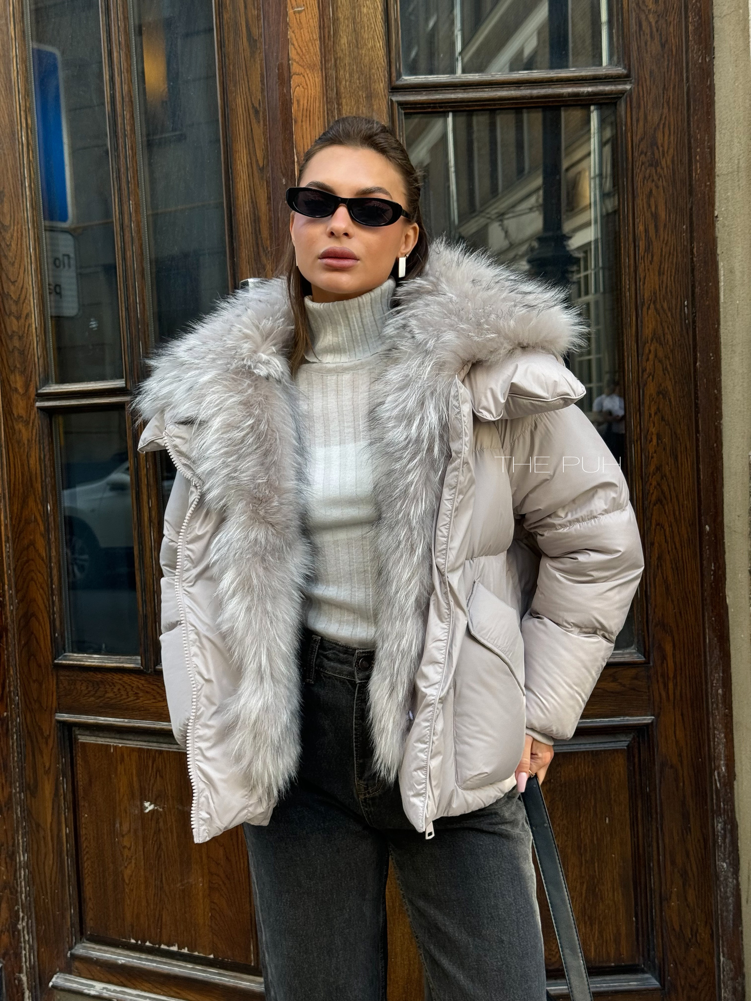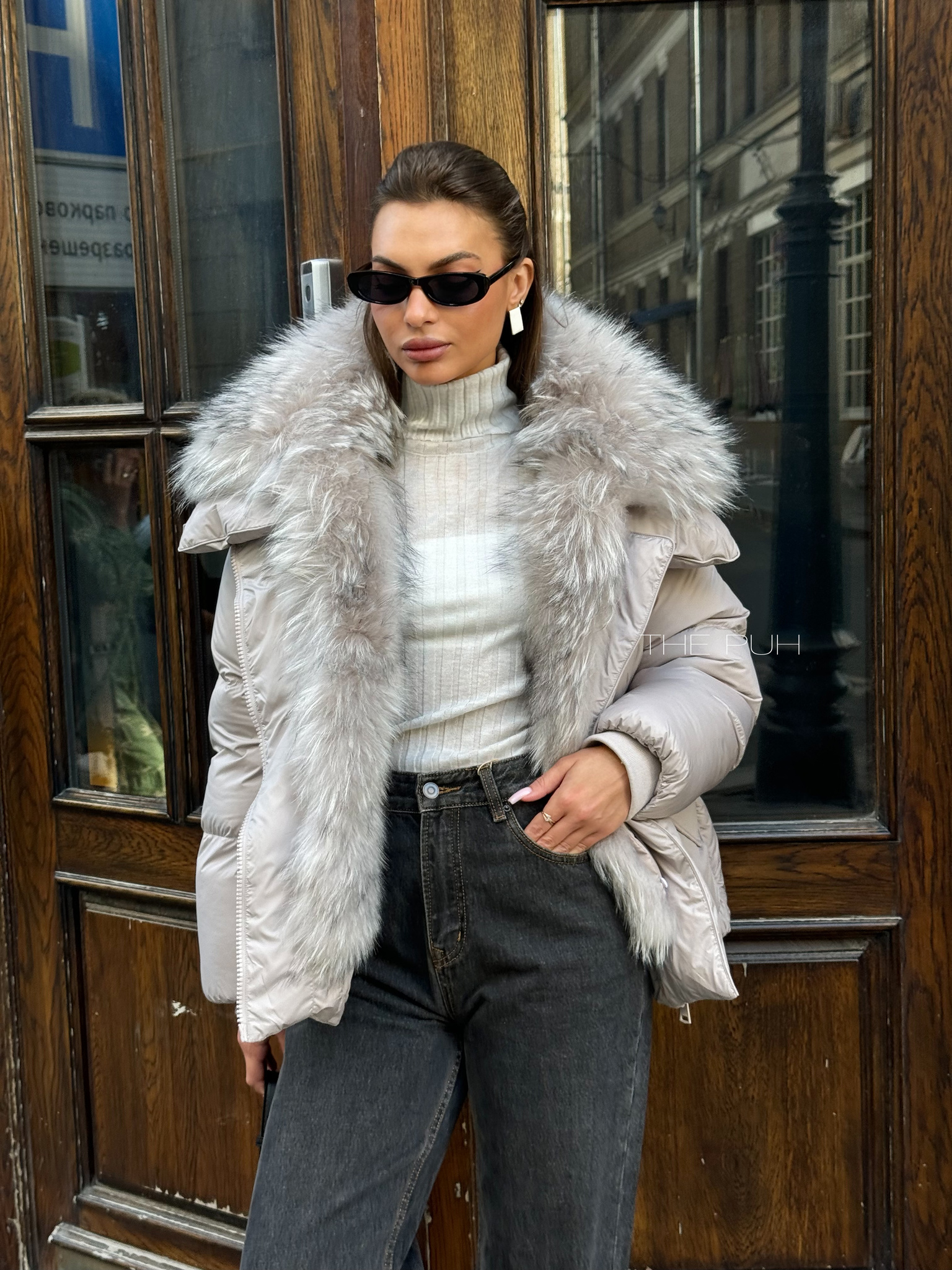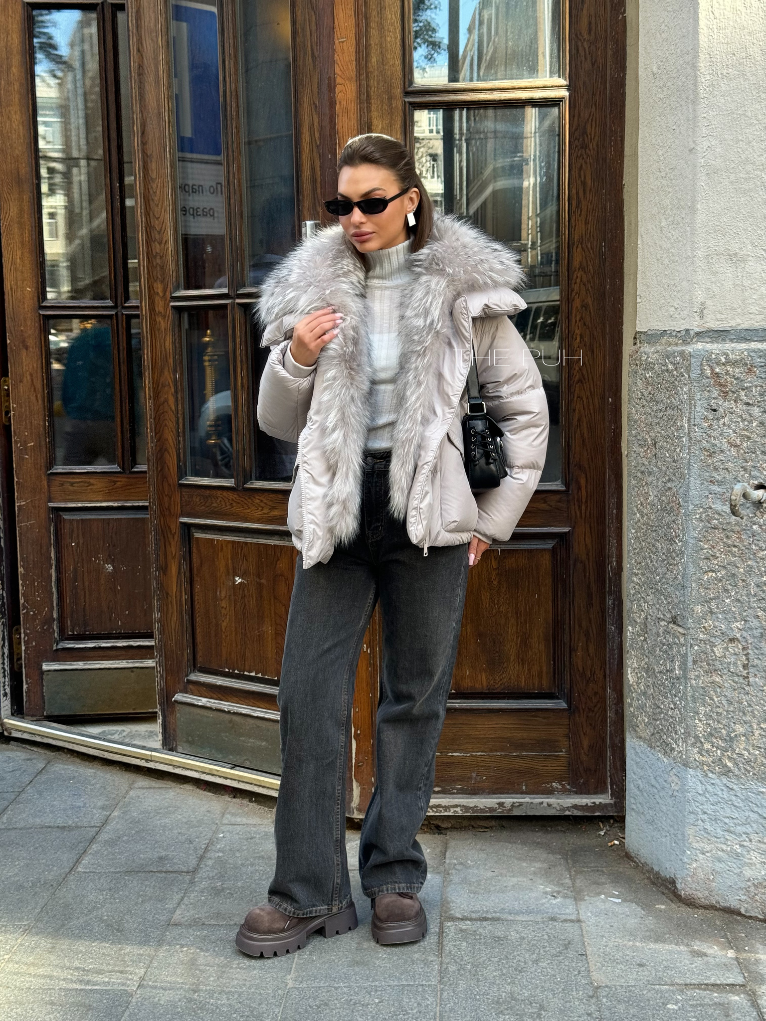 Теплый короткий пуховик светло-серого цвета с эффектным мехом енота. Съемный меховой воротник добавляет роскоши и защищает от холода. Универсальный дизайн подходит как под повседневные образы, так и для особых случаев. Легко сочетается с любой одеждой вашего гардероба! Комфортная утепленная модель сохранит тепло даже при низких температурах. Вам будет комфортно и модно в любую погоду!