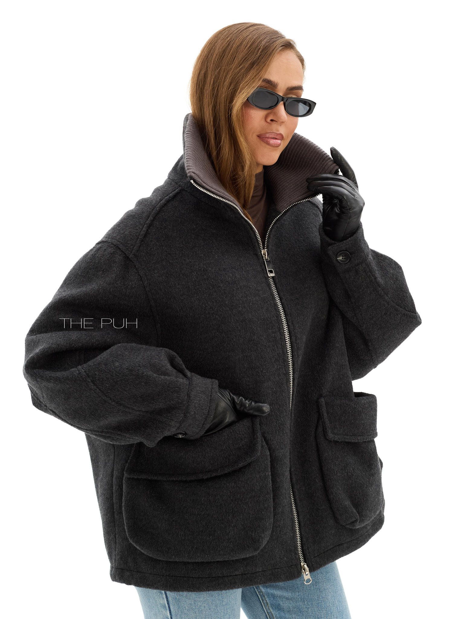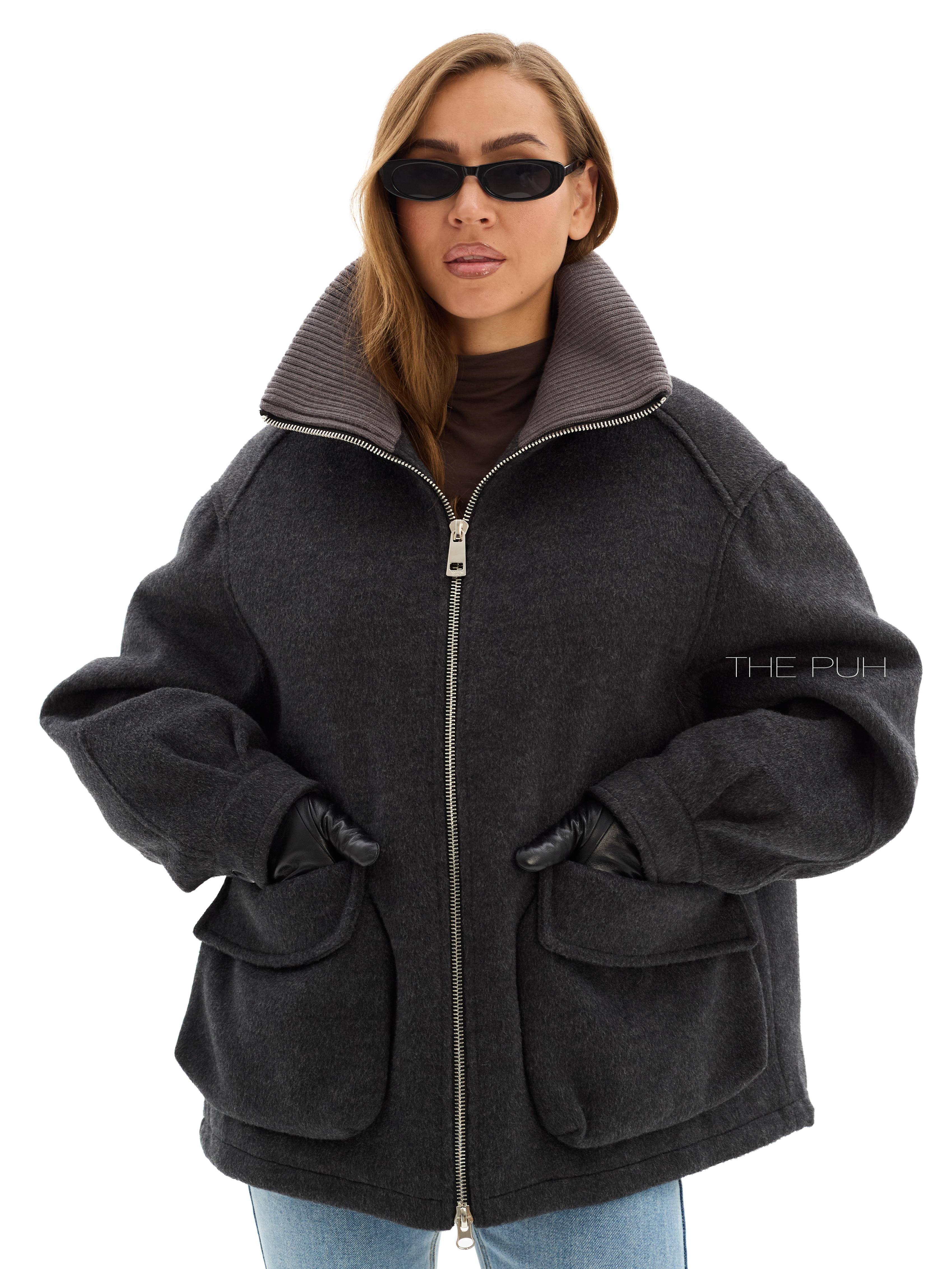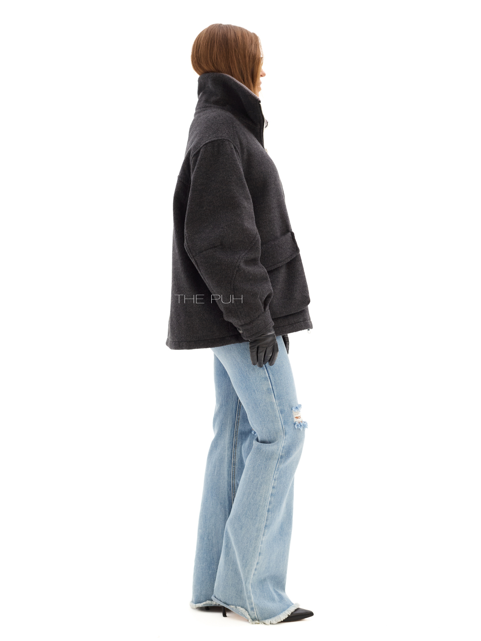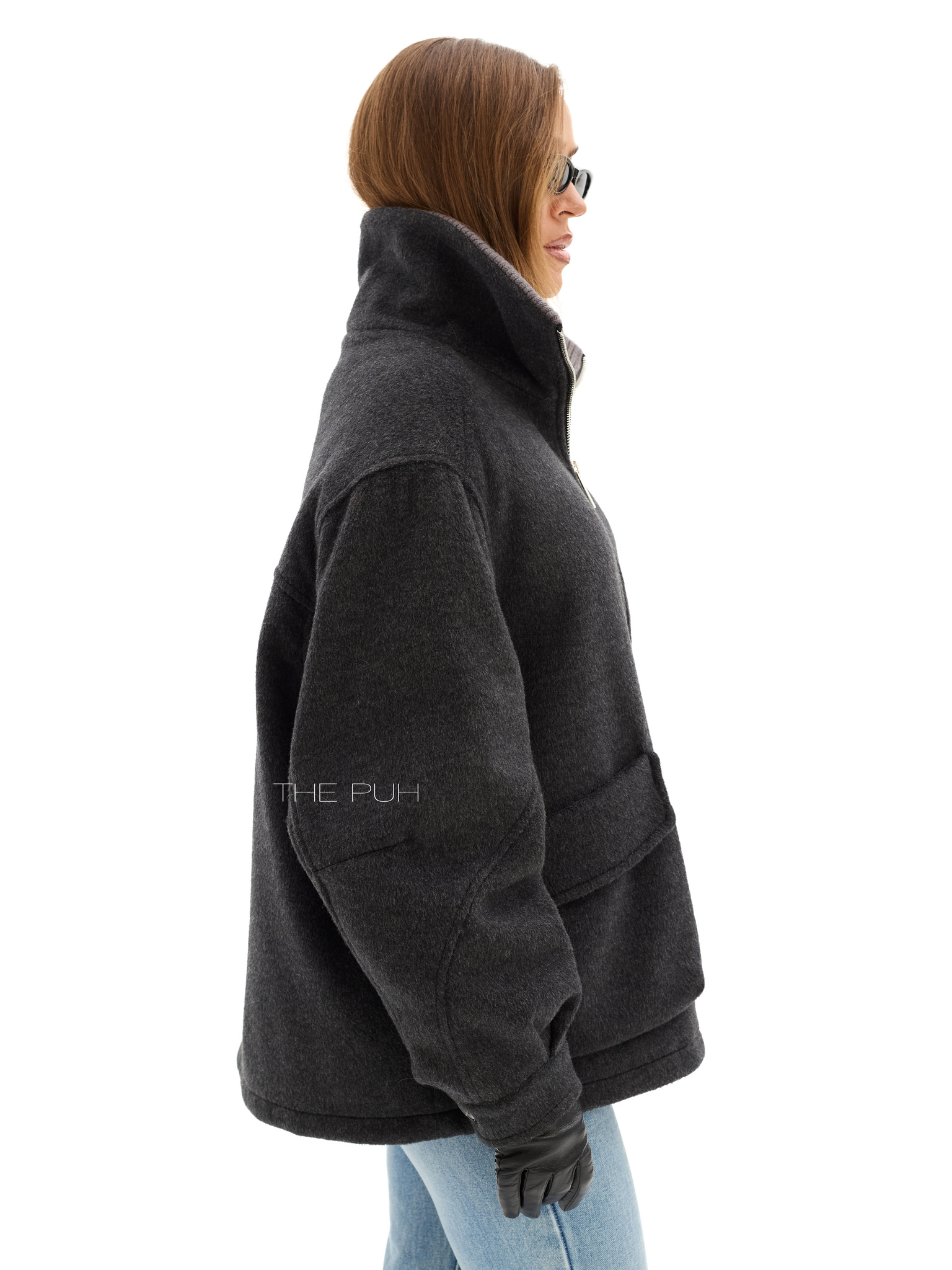 Графитовая куртка с накладными карманами из шерсти на молнии – удобная модель с продуманным дизайном и лаконичным силуэтом. Объёмные карманы добавляют практичности, а натуральный пуховый утеплитель сохраняет тепло, не сковывая движений.