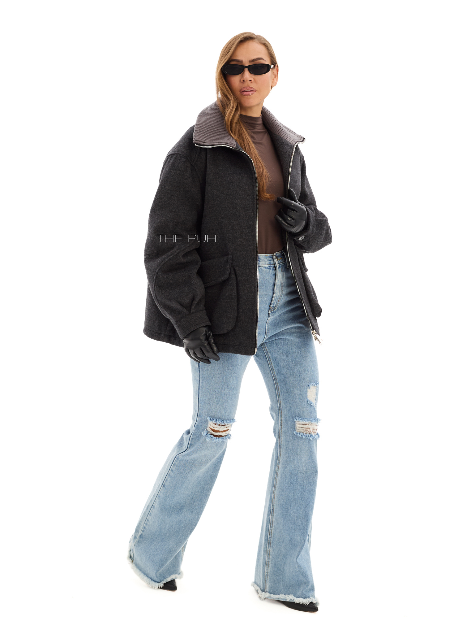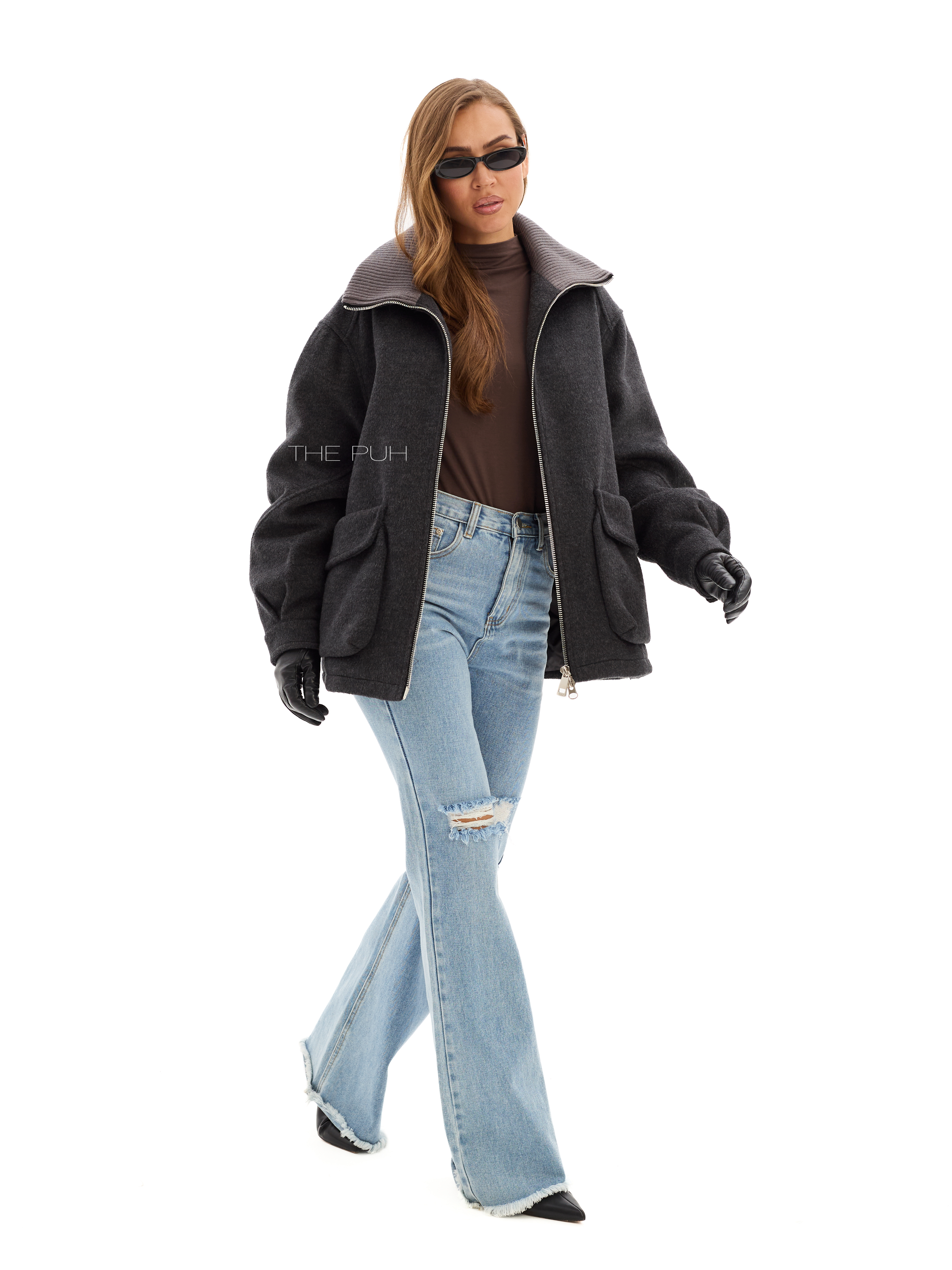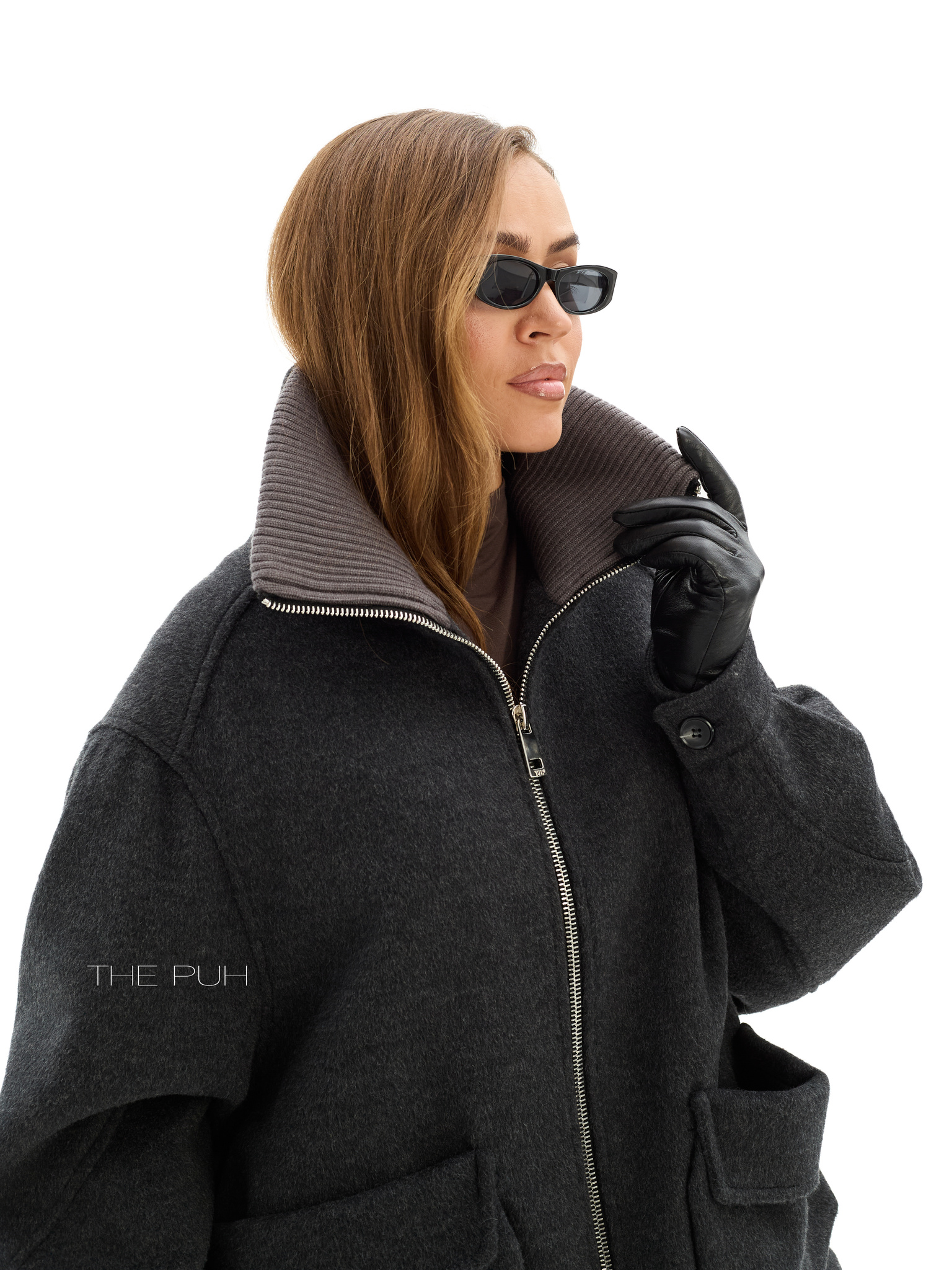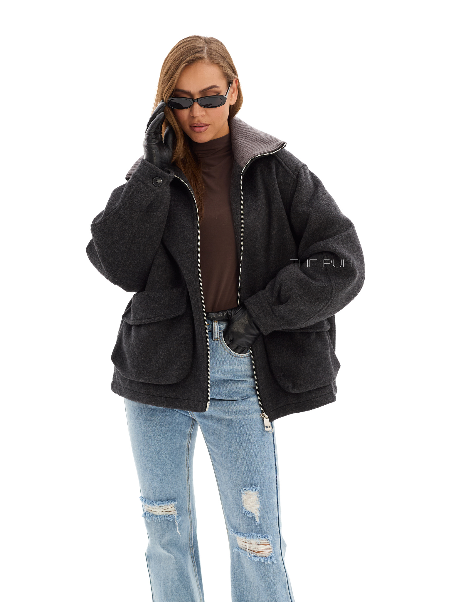 Графитовая куртка с накладными карманами из шерсти на молнии – удобная модель с продуманным дизайном и лаконичным силуэтом. Объёмные карманы добавляют практичности, а натуральный пуховый утеплитель сохраняет тепло, не сковывая движений.