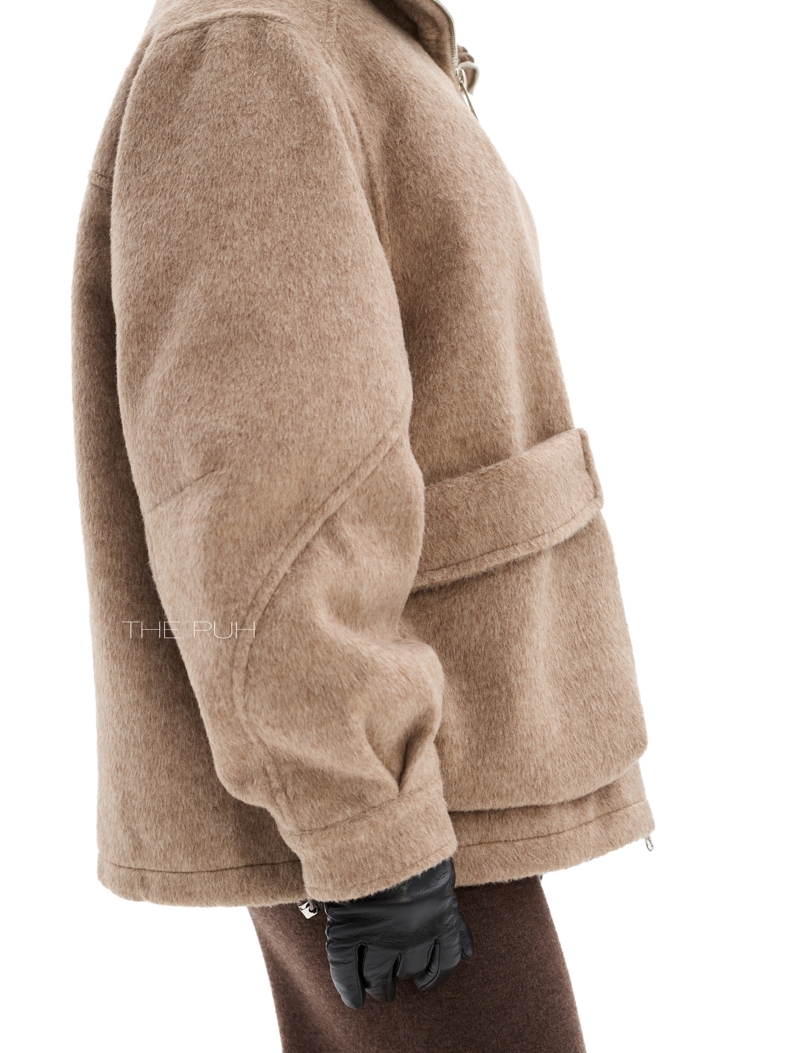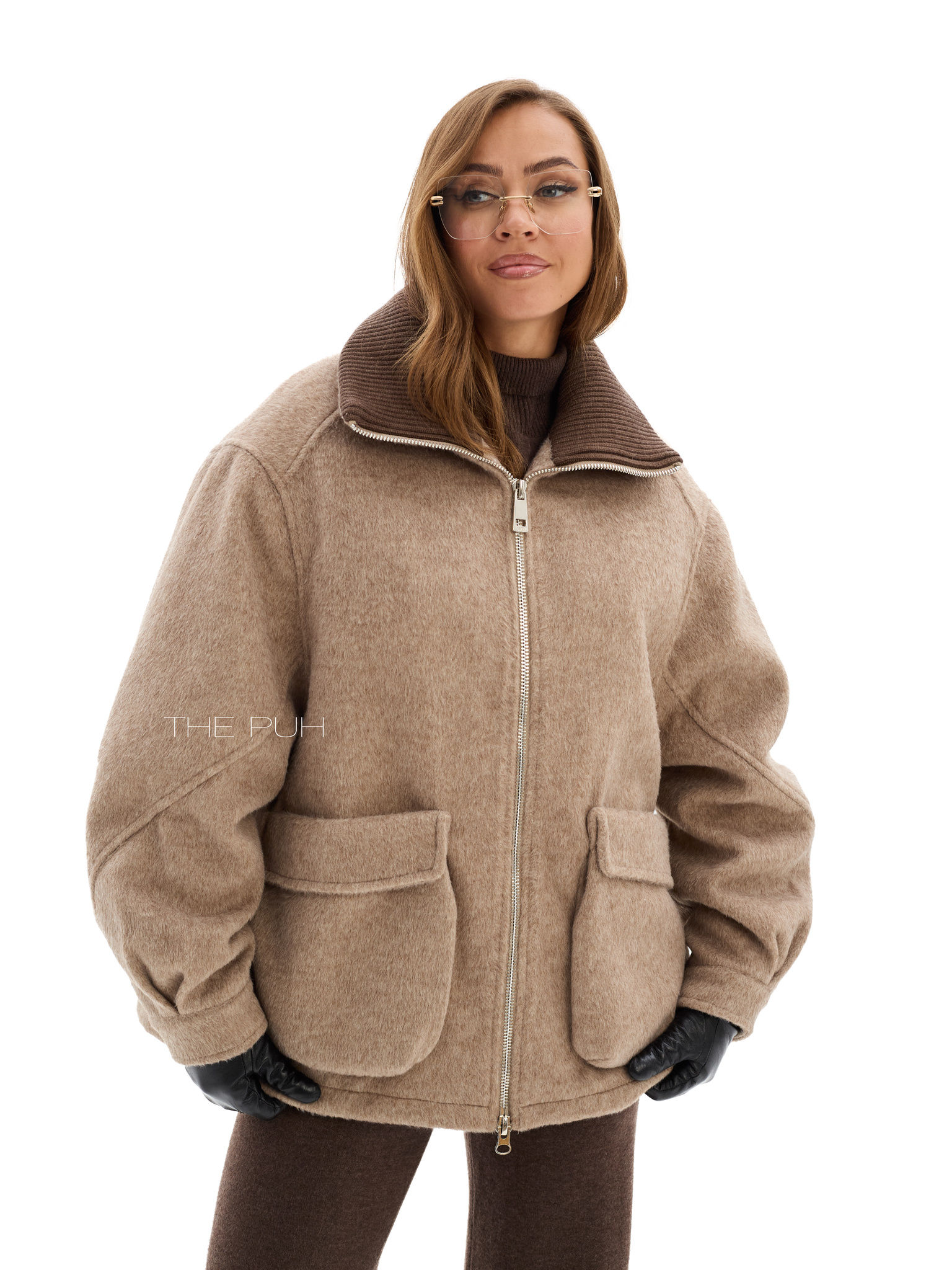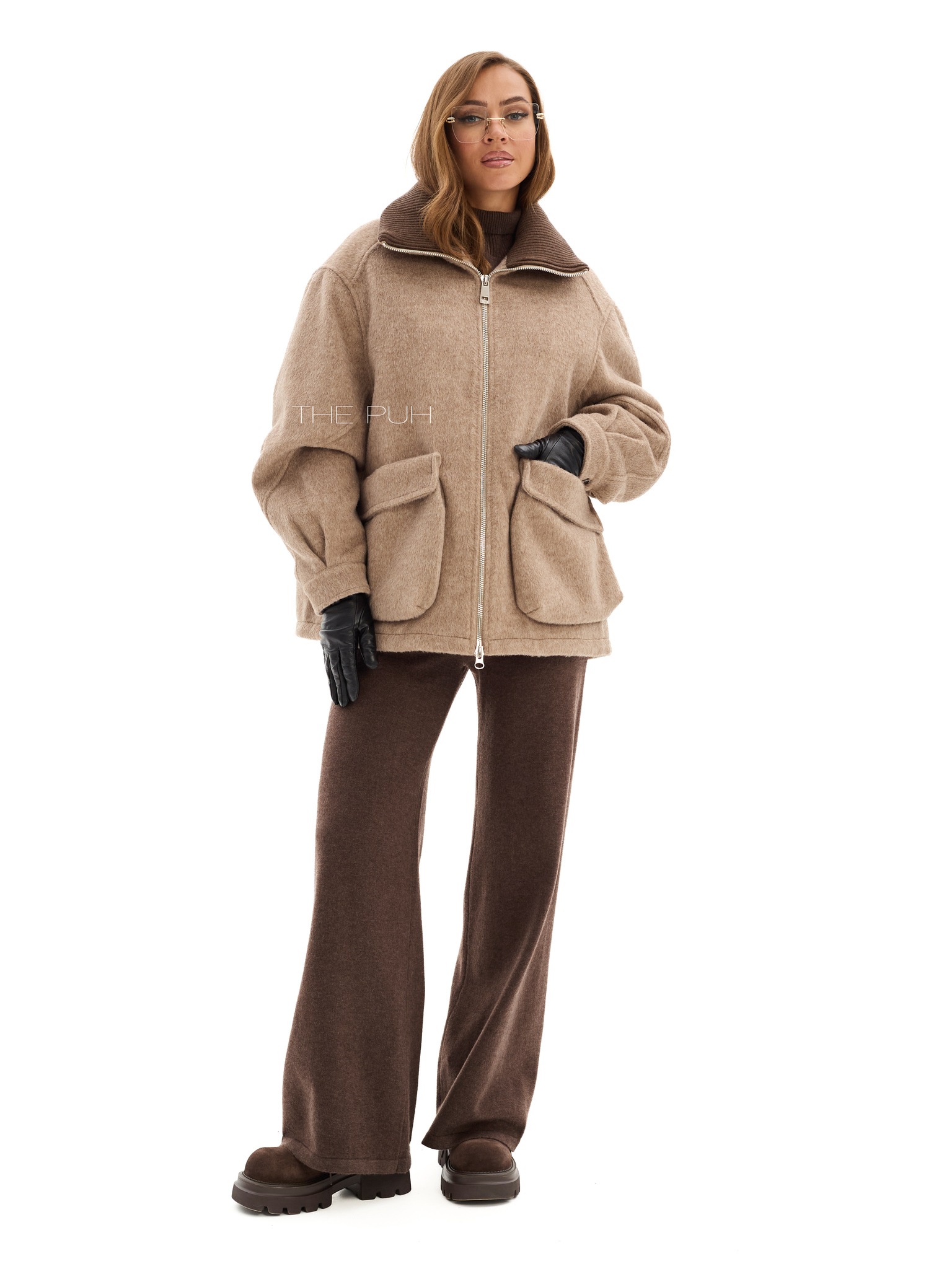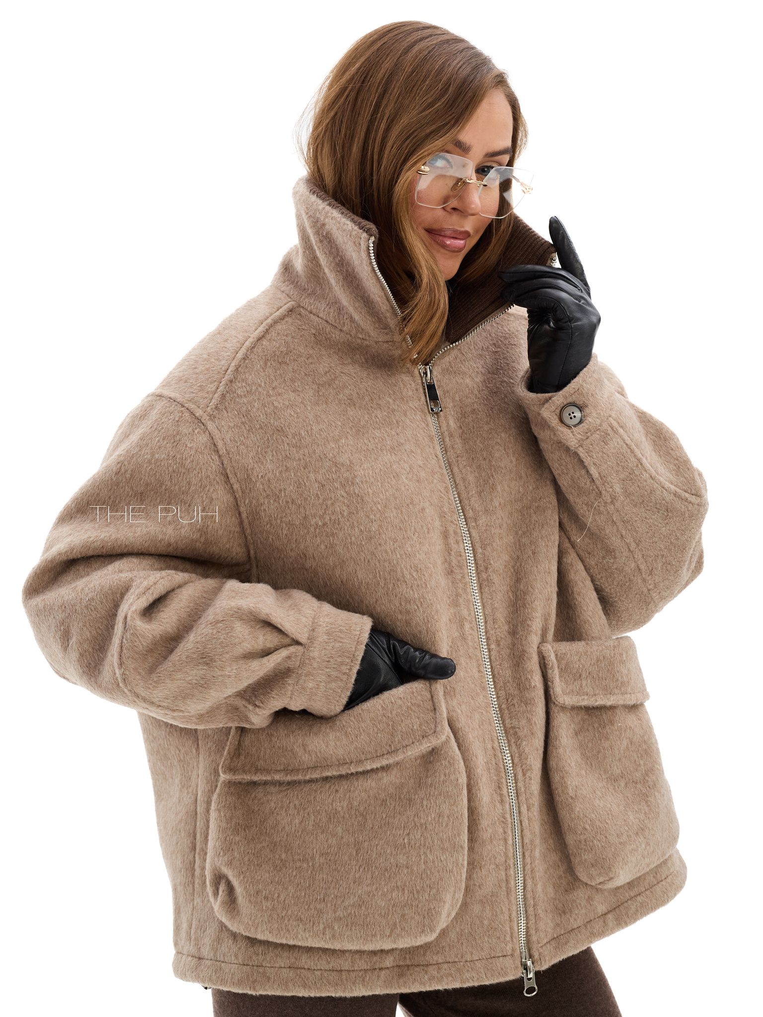 Бежевая куртка с накладными карманами из шерсти на молнии – удобная модель с продуманным дизайном и лаконичным силуэтом. Объёмные карманы добавляют практичности, а натуральный пуховый утеплитель сохраняет тепло, не сковывая движений.
