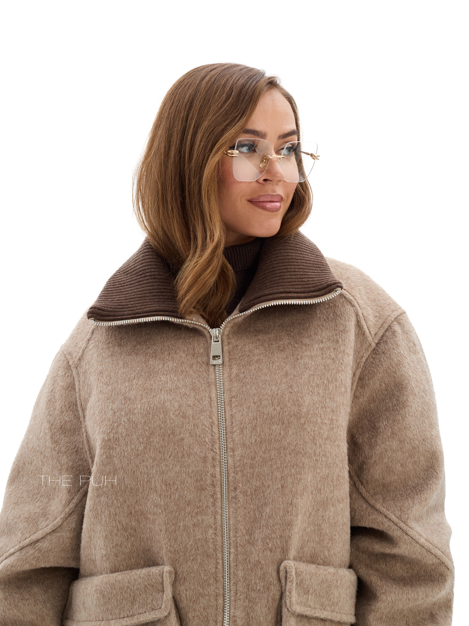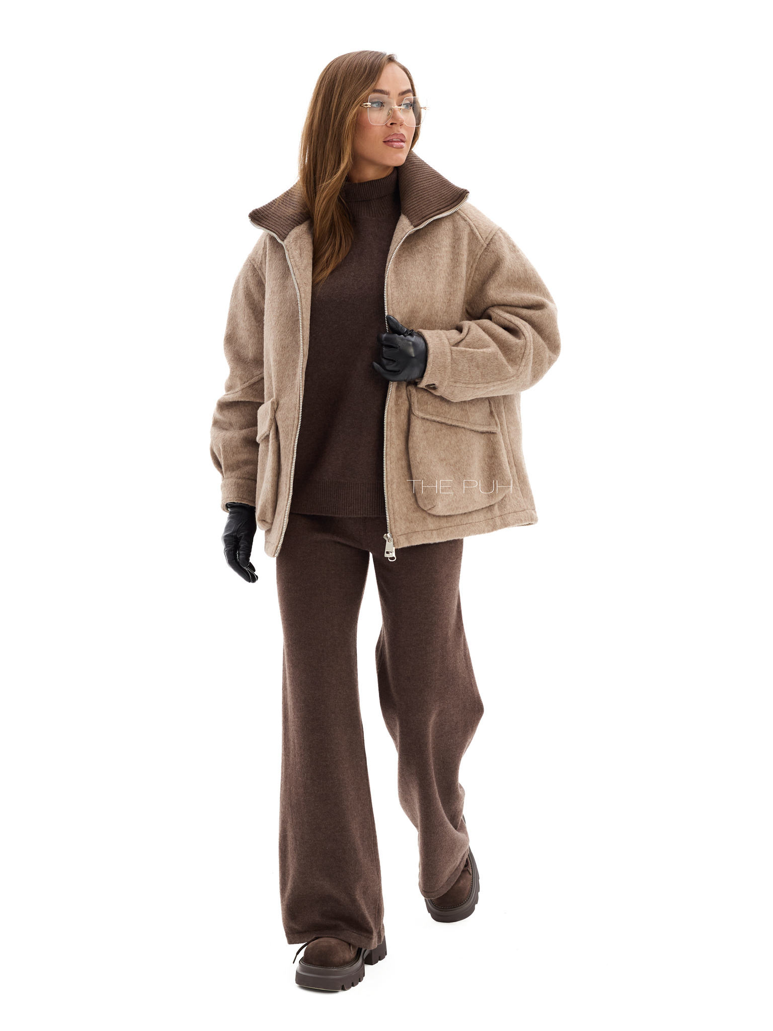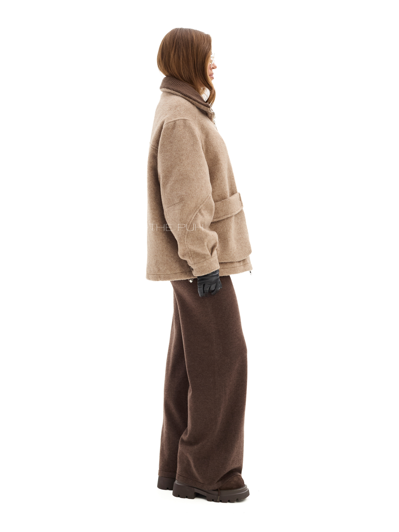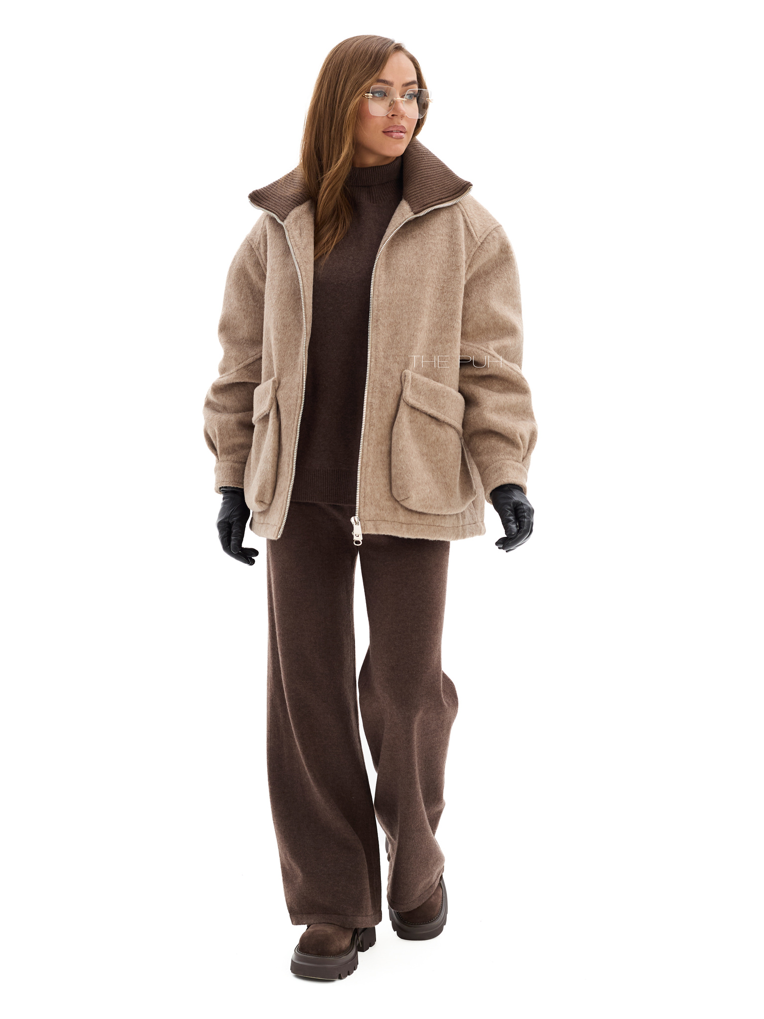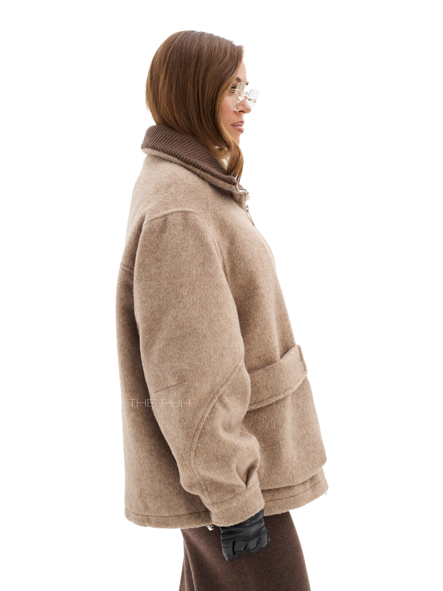Бежевая куртка с накладными карманами из шерсти на молнии – удобная модель с продуманным дизайном и лаконичным силуэтом. Объёмные карманы добавляют практичности, а натуральный пуховый утеплитель сохраняет тепло, не сковывая движений.