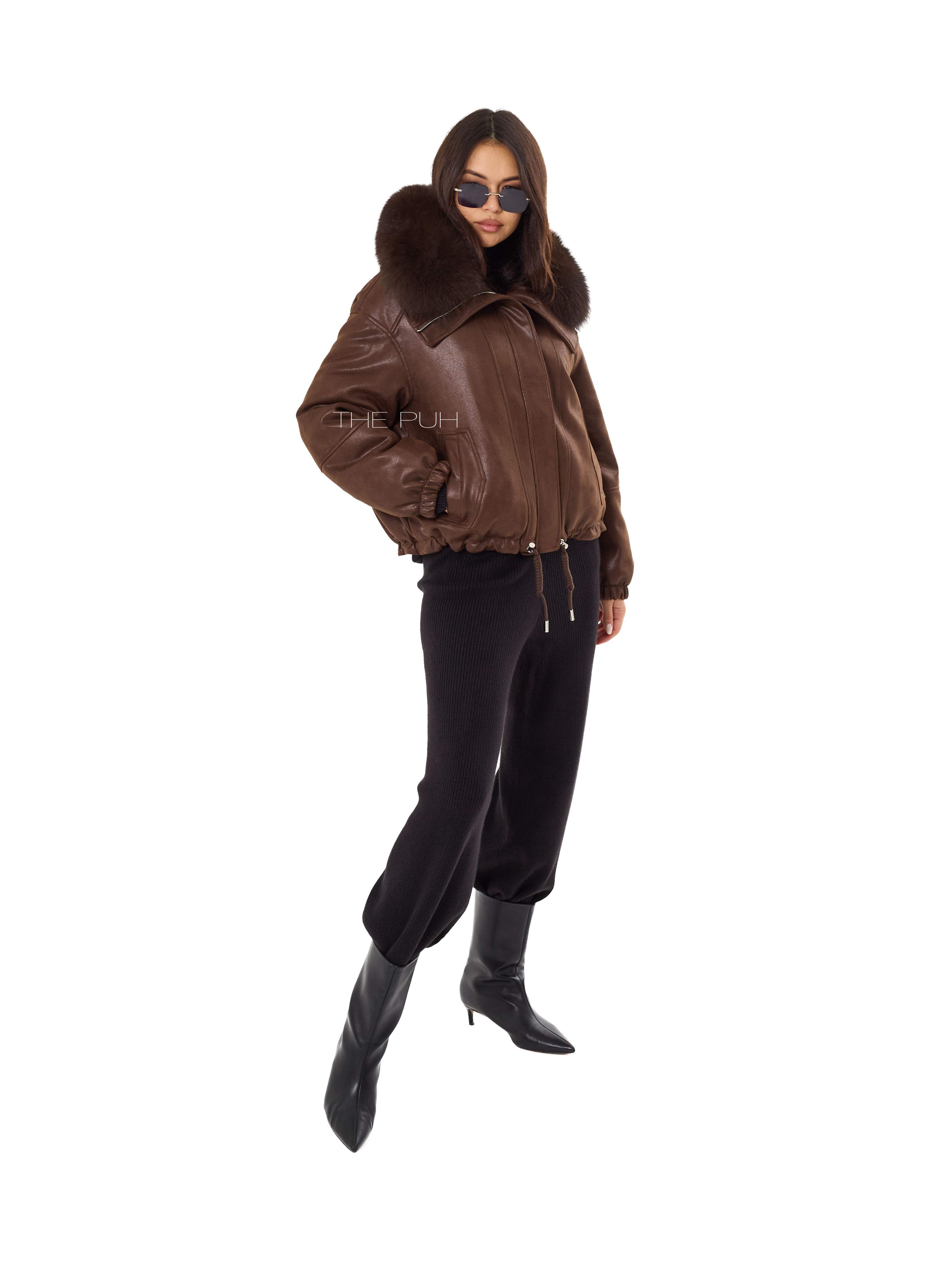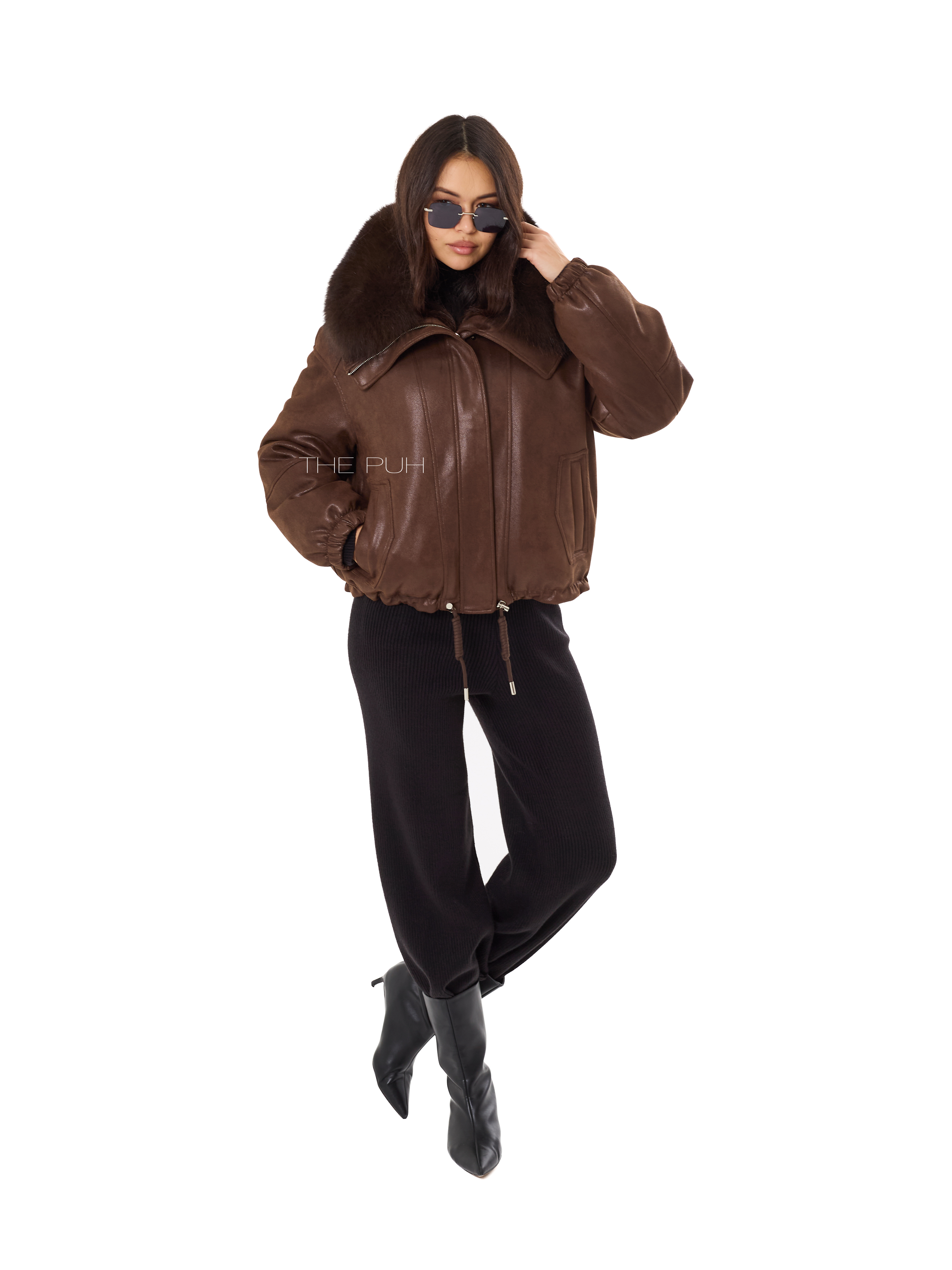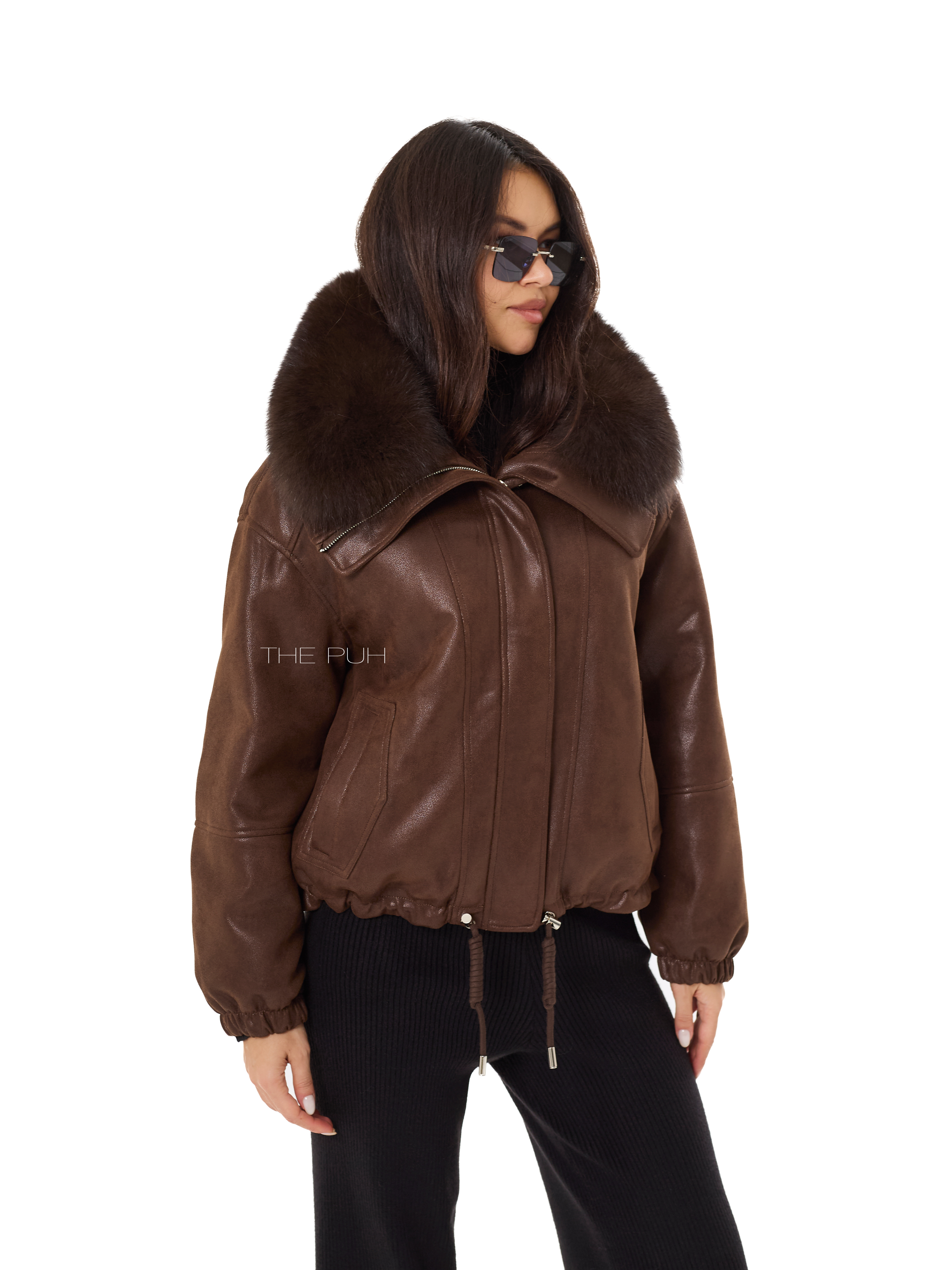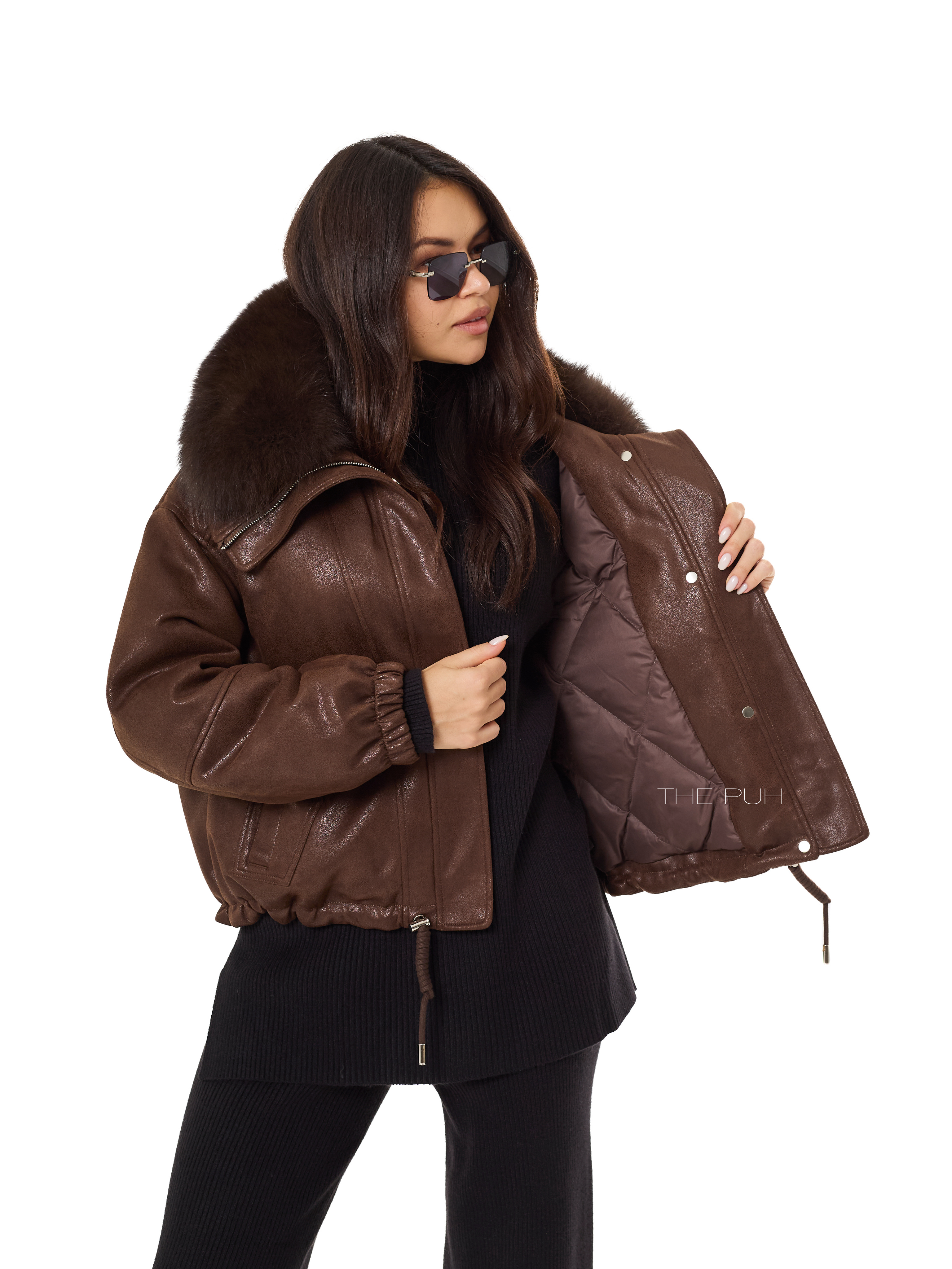 Шоколадный пуховик из эко-кожи с накладным мехом на молнии – стильное и практичное решение для холодного сезона. Глянцевая поверхность эко-кожи придает модели современный лоск, а съемный меховой воротник добавляет роскоши и тепла. Утепленный наполнитель гарантирует комфорт даже в сильные морозы.