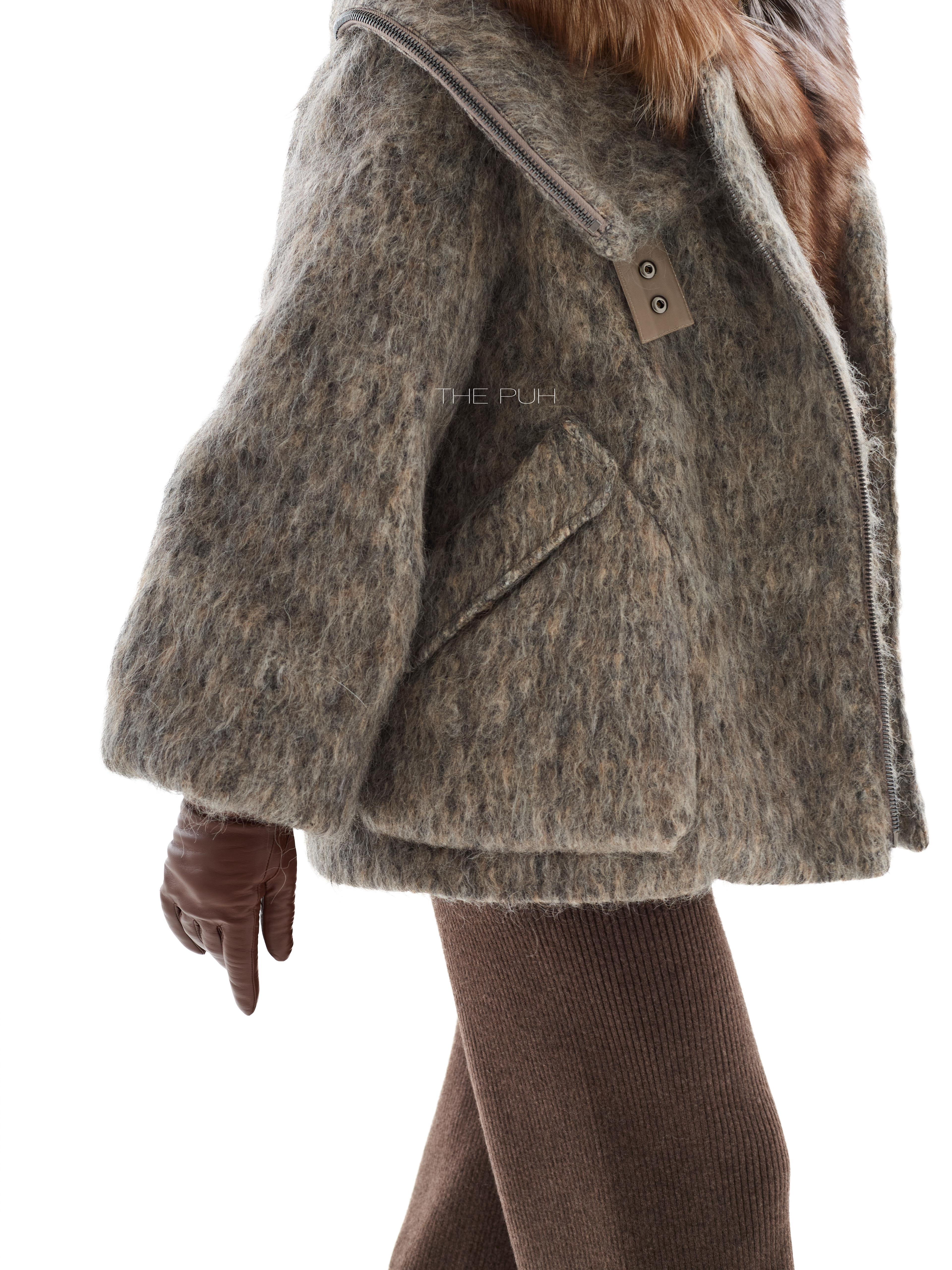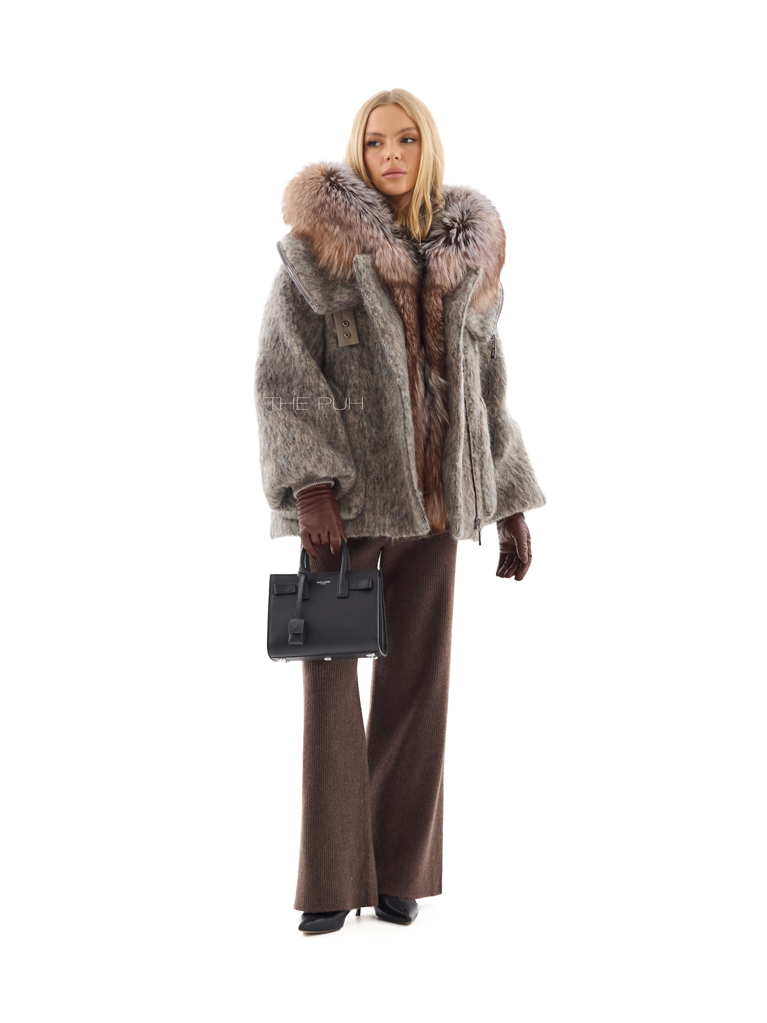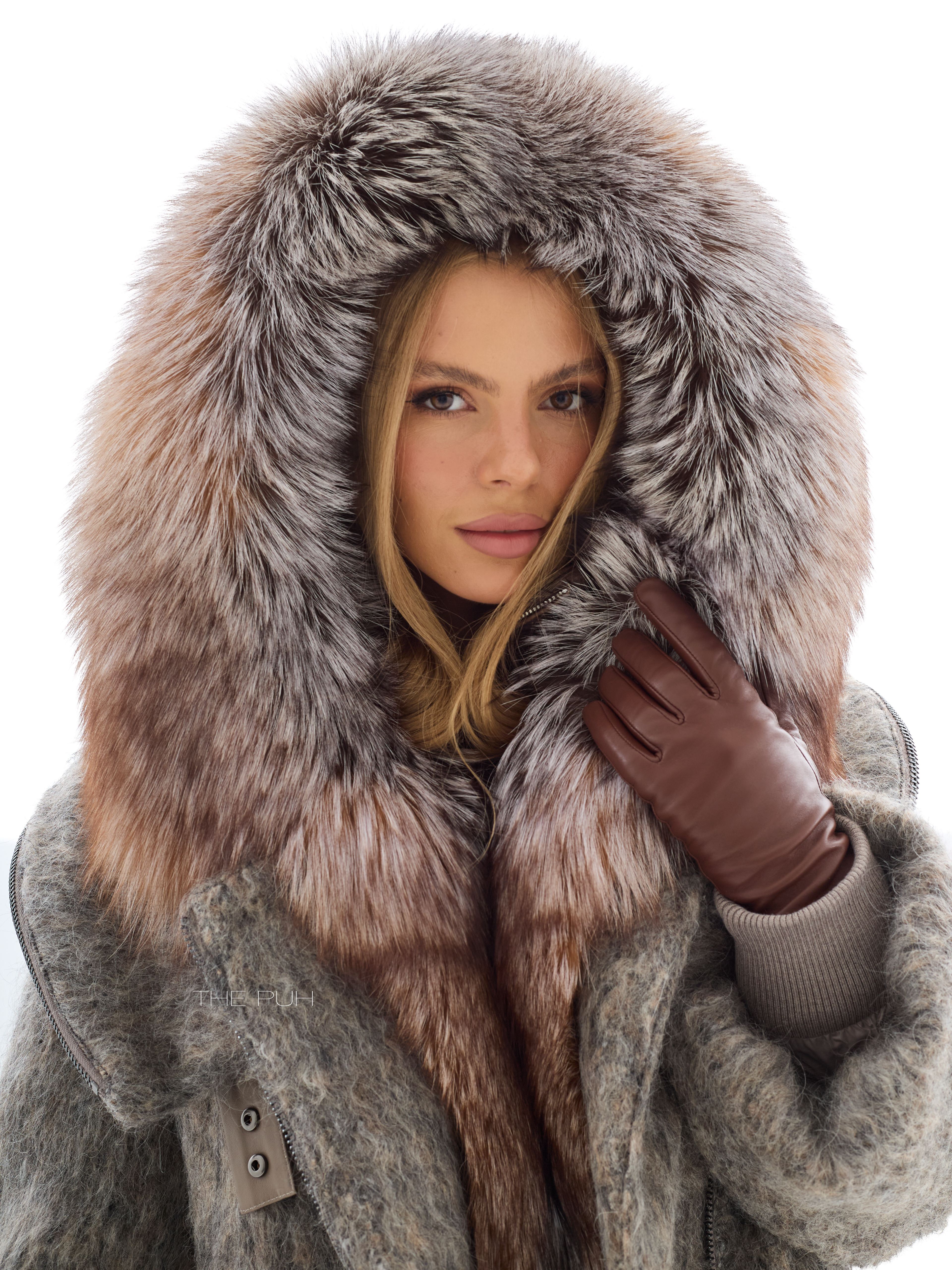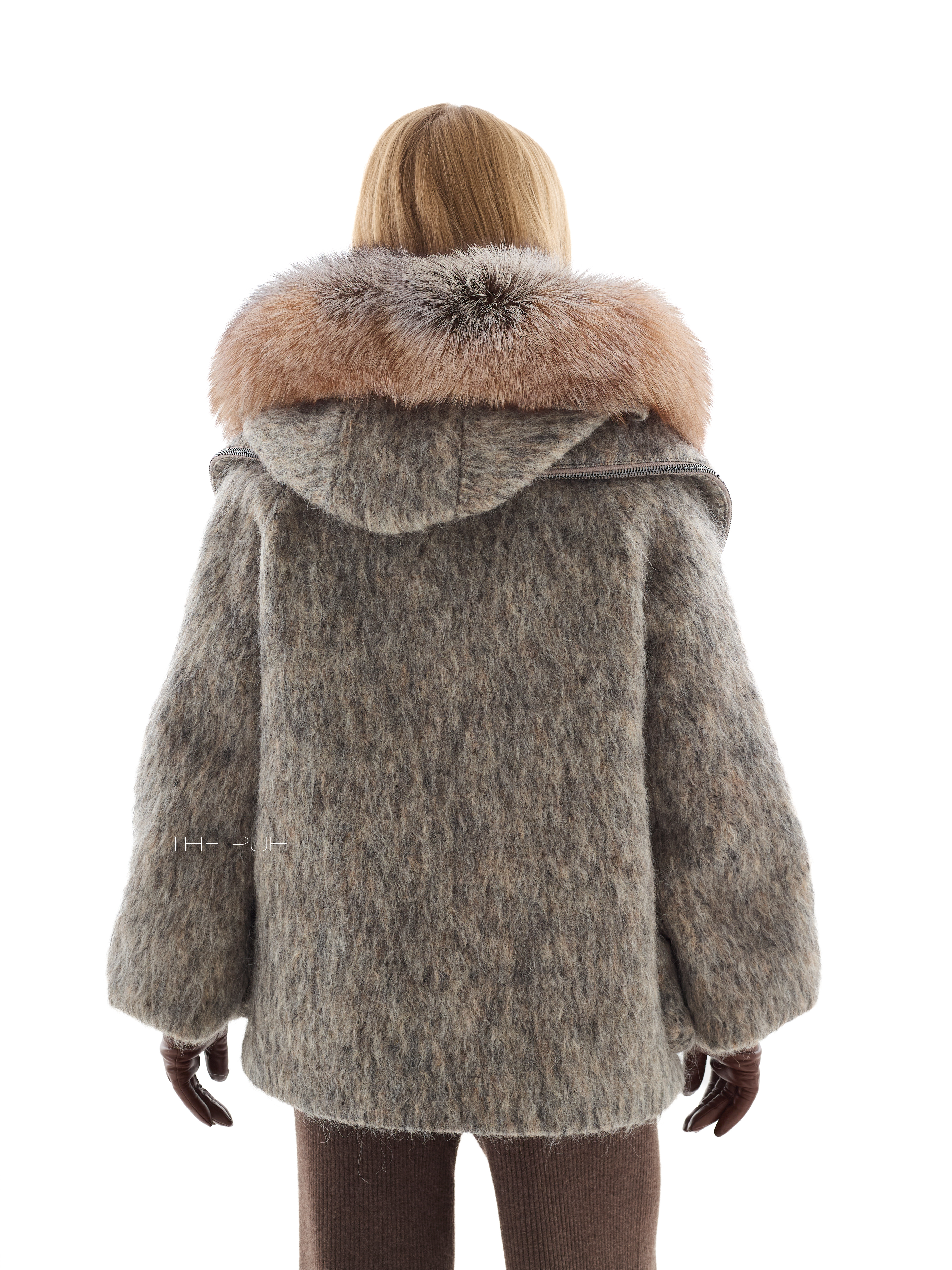 Шоколадная куртка из шерсти с молнией на воротнике, с объемным капюшоном и съемным мехом – это воплощение стиля и функциональности для холодного сезона. Практичные накладные карманы подчеркивают современный силуэт, а роскошный съемный лисий мех на капюшоне позволяет менять образ в зависимости от повода.