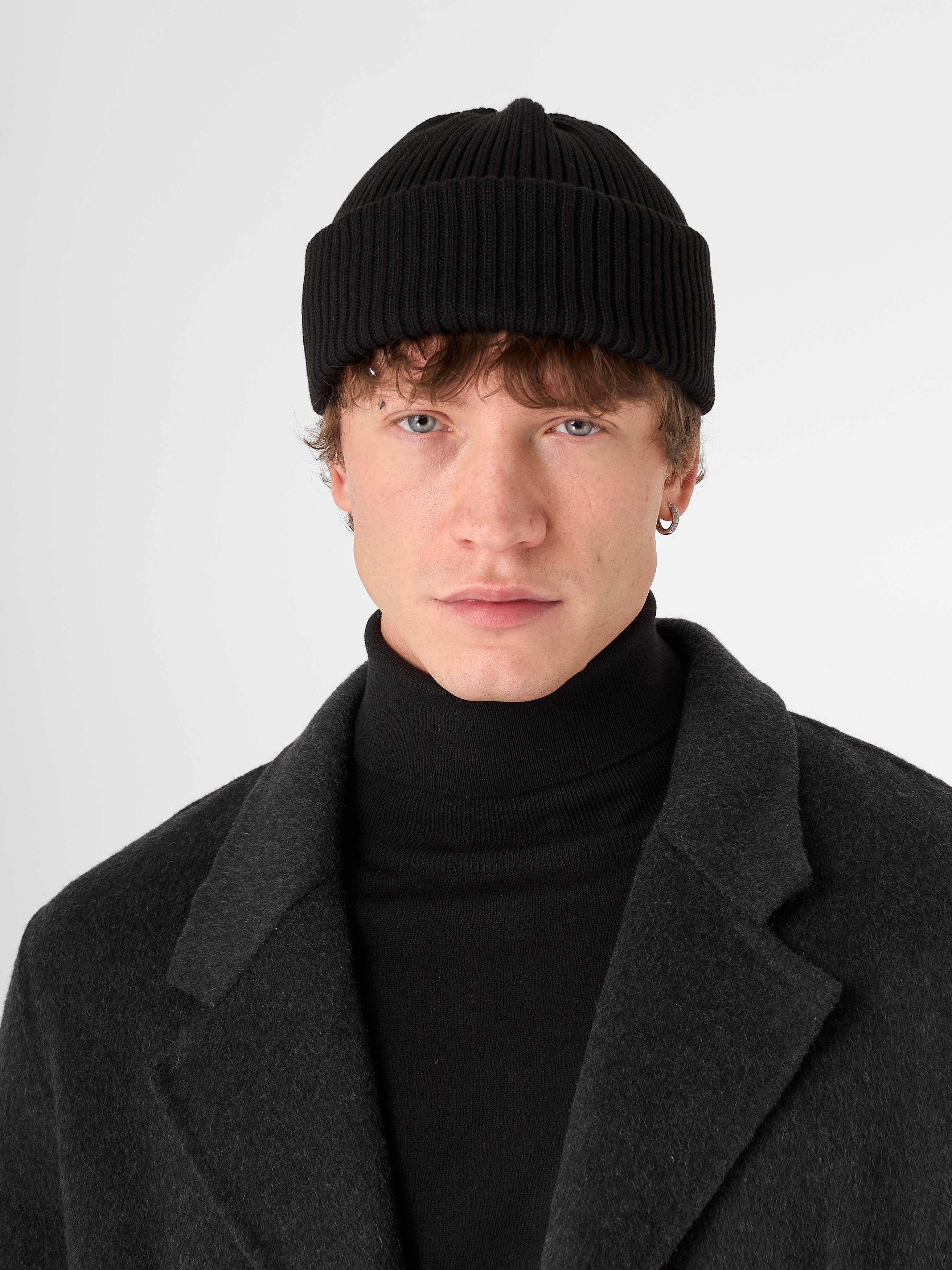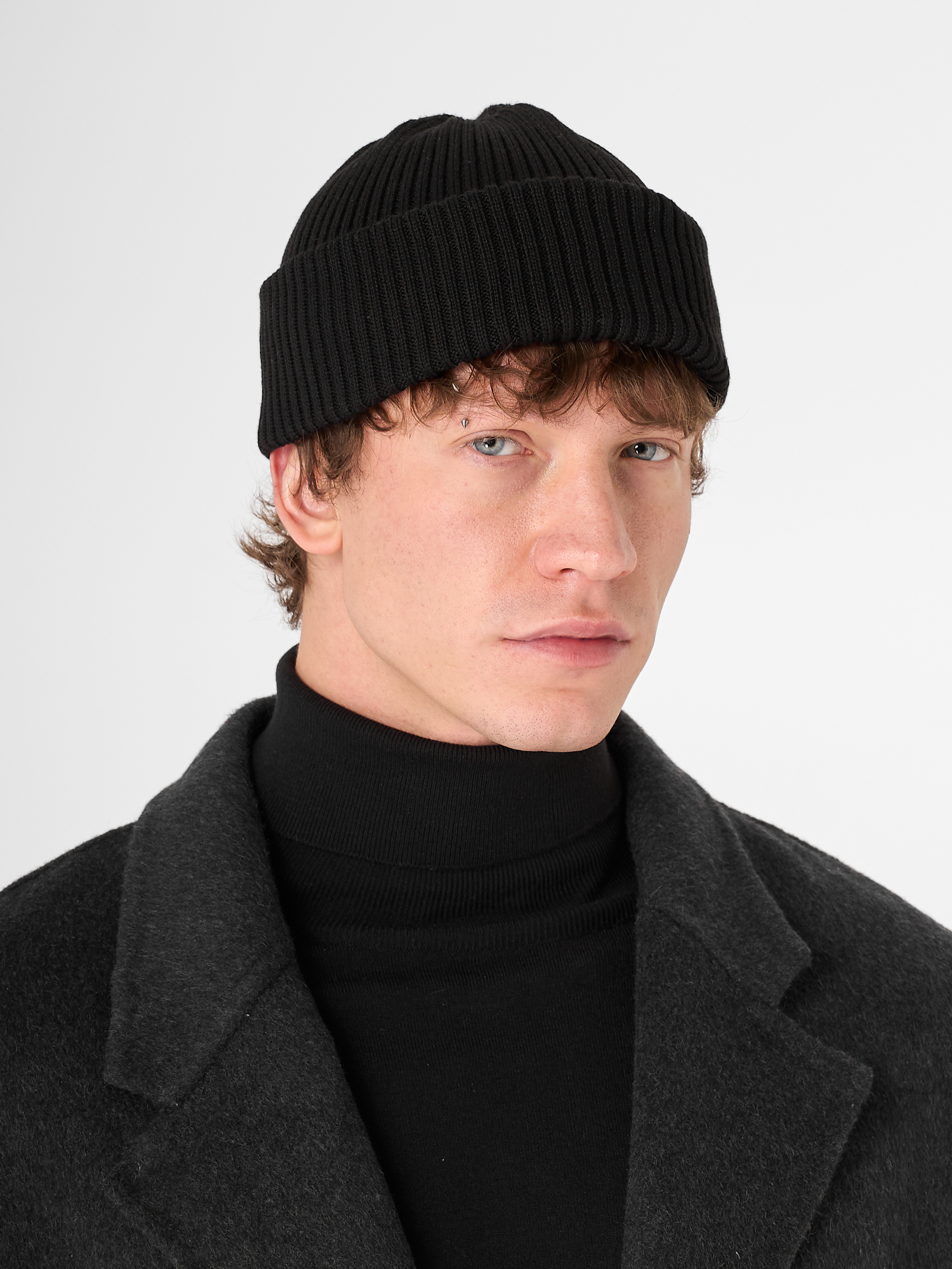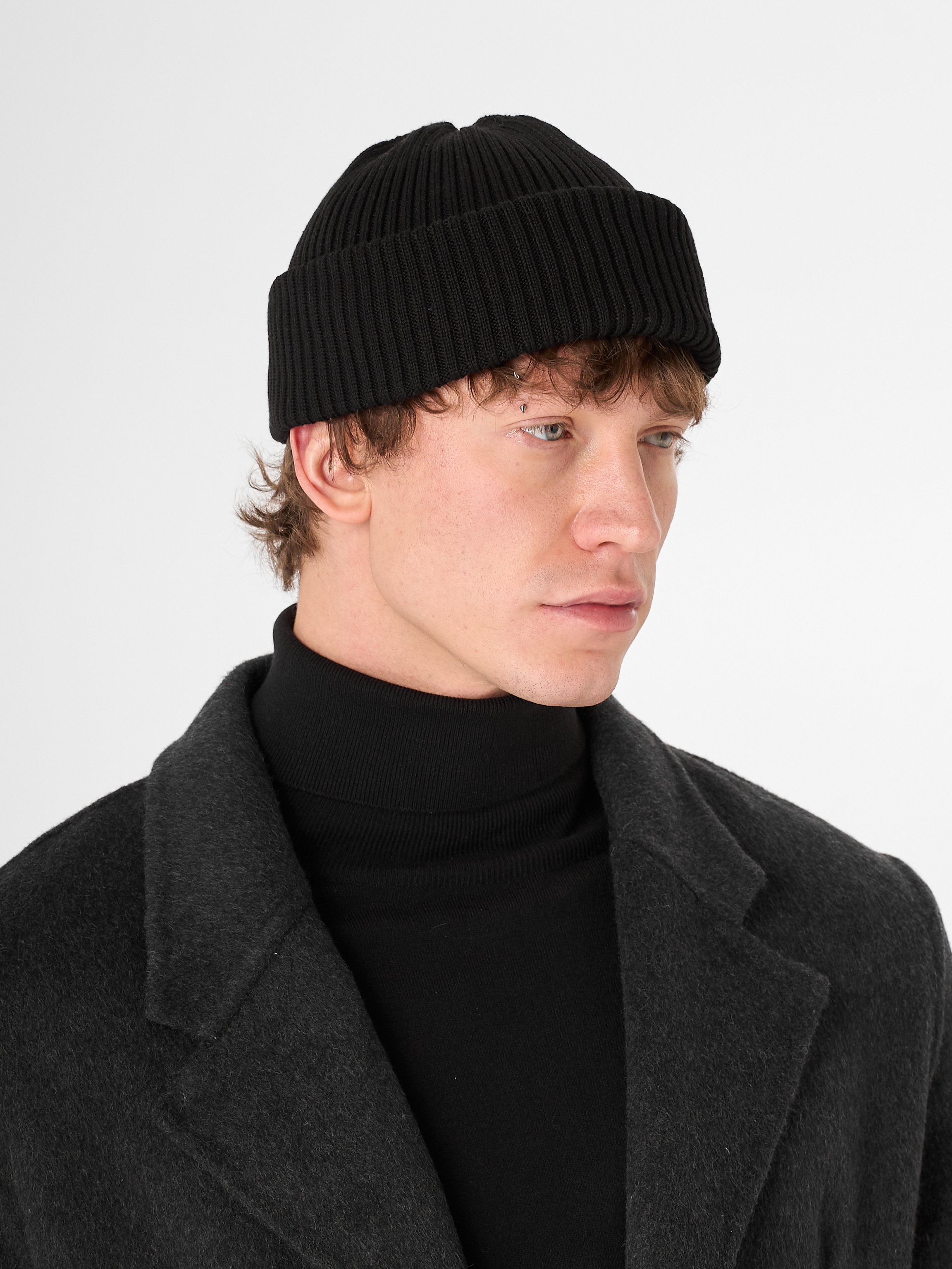 Хлопковая шапка-бини в рубчик в черном цвете.